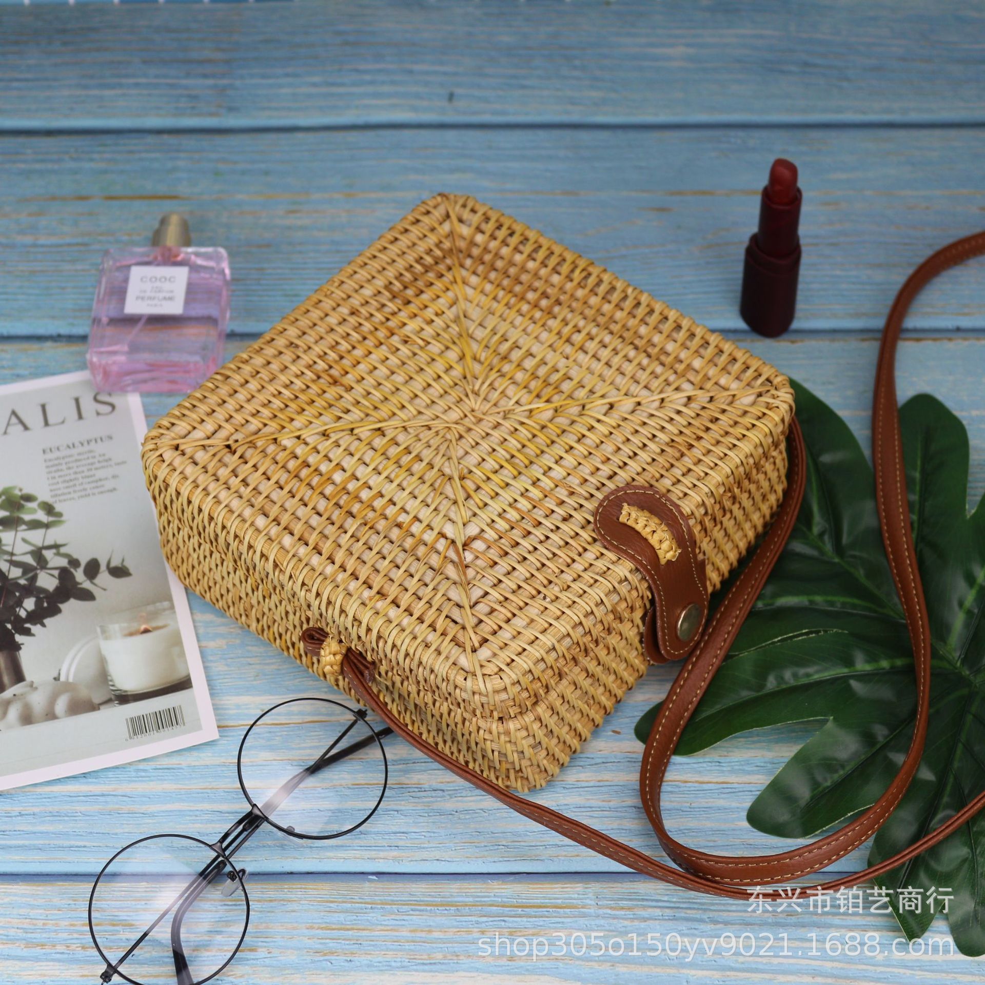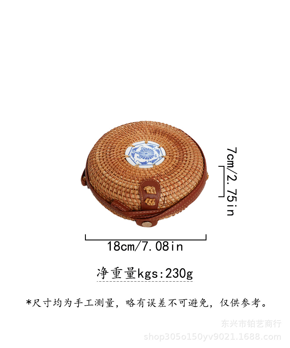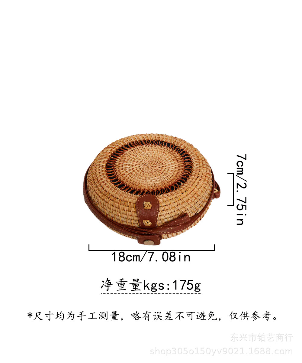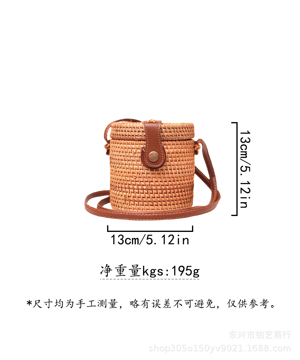 도매 베트남 등나무 수제 짠 가방 밀짚 짠 가방 작은 라운드 버킷 싱글 숄더 크로스 바디 백