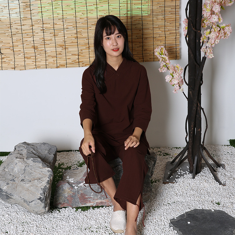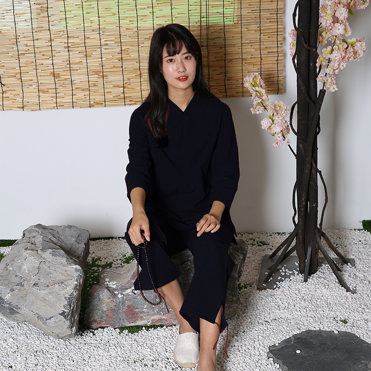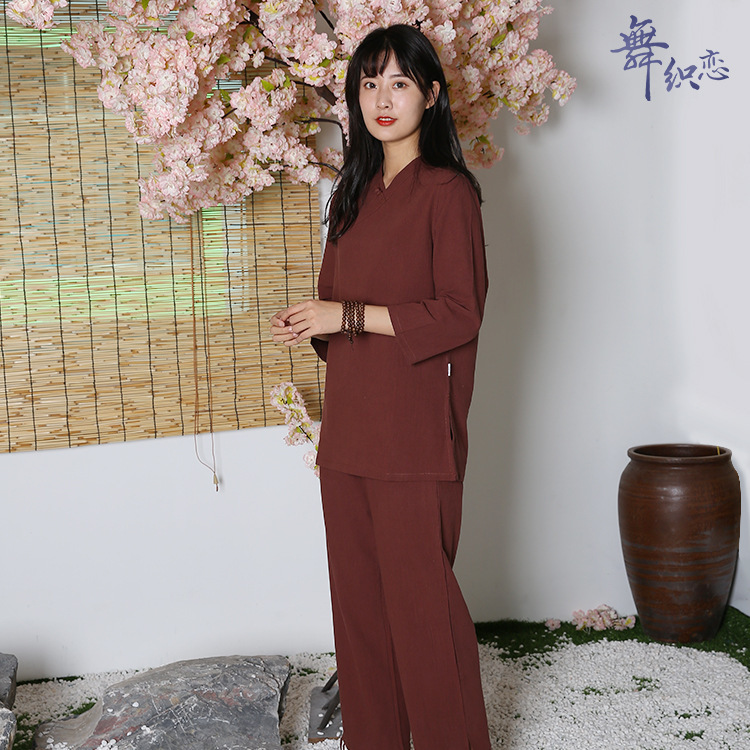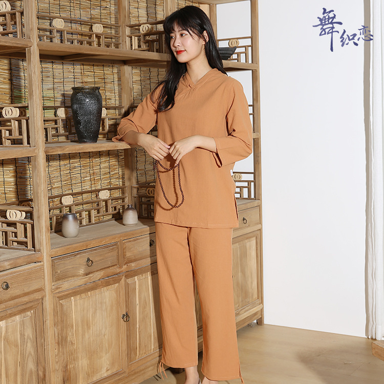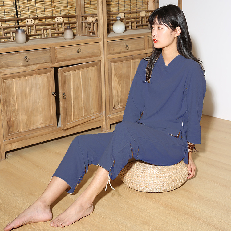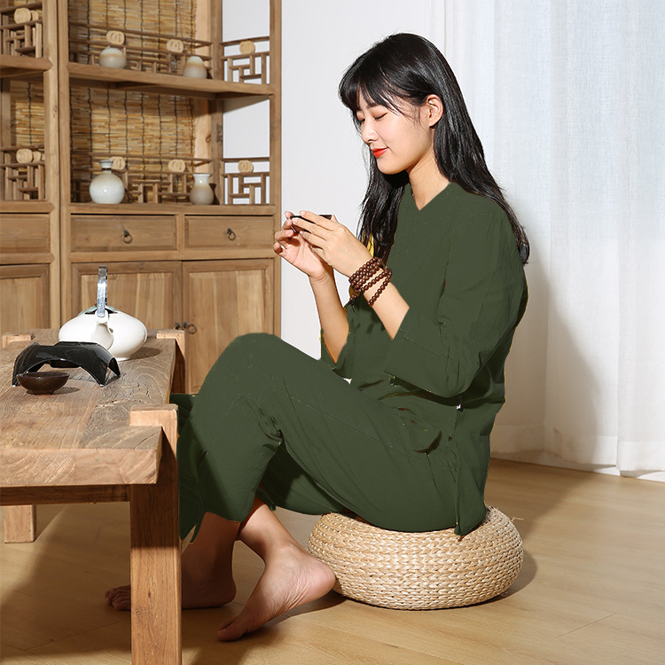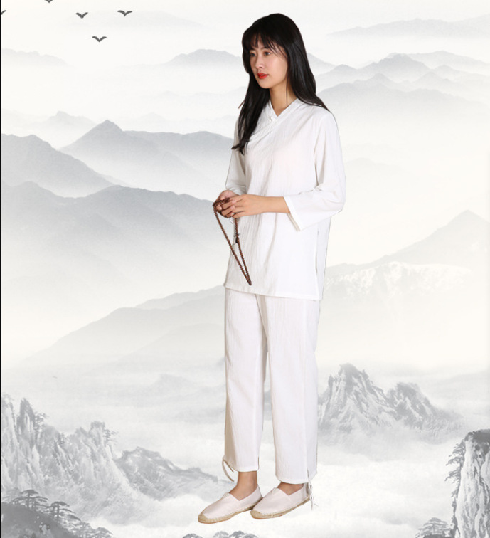 면과 린넨 명상 요가 의류 피트니스 의류 야외 스포츠 평신도 사람들 명상 태극권 의류 세트 머리카락의 세대스토어 가기