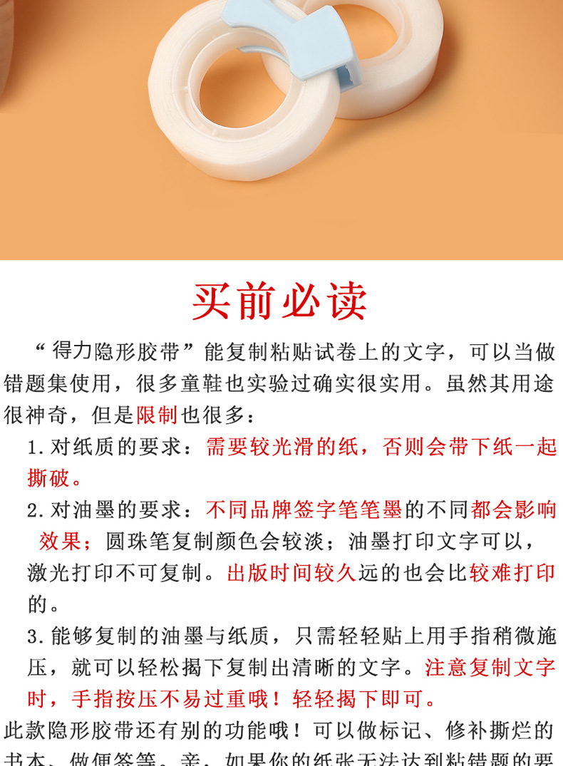 학생들이 잘못된 질문 복사를 사용하는 세트 Deli Invisible 문구 테이프, 사진 복사 및 수리, 손 찢기 테이프스토어 가기