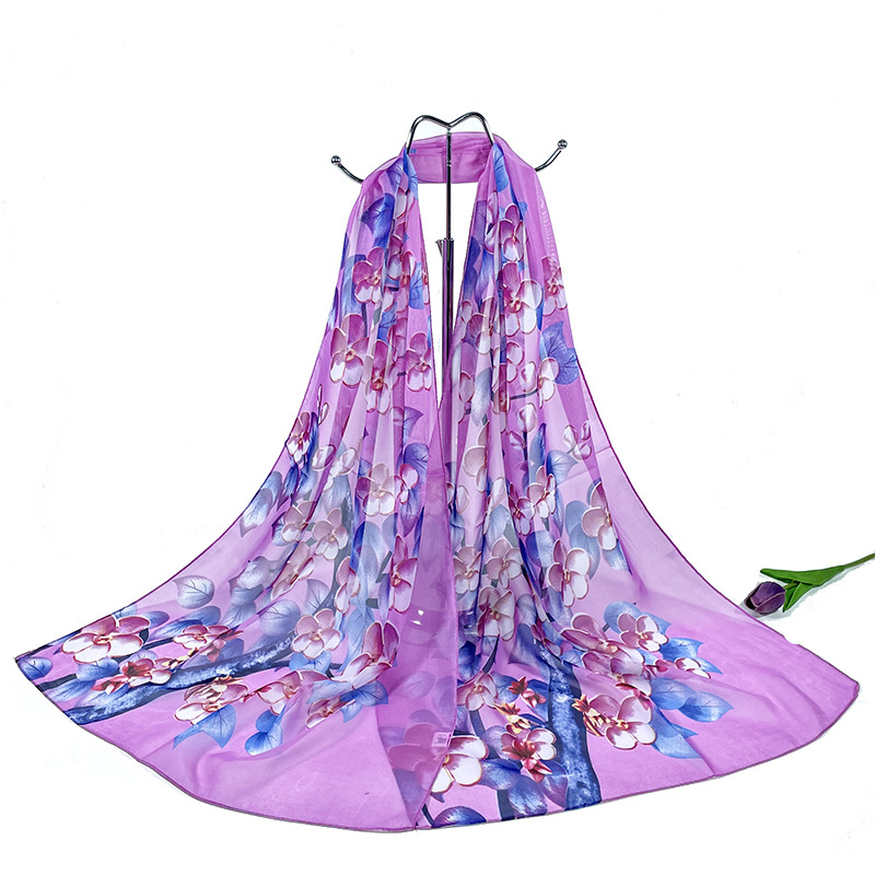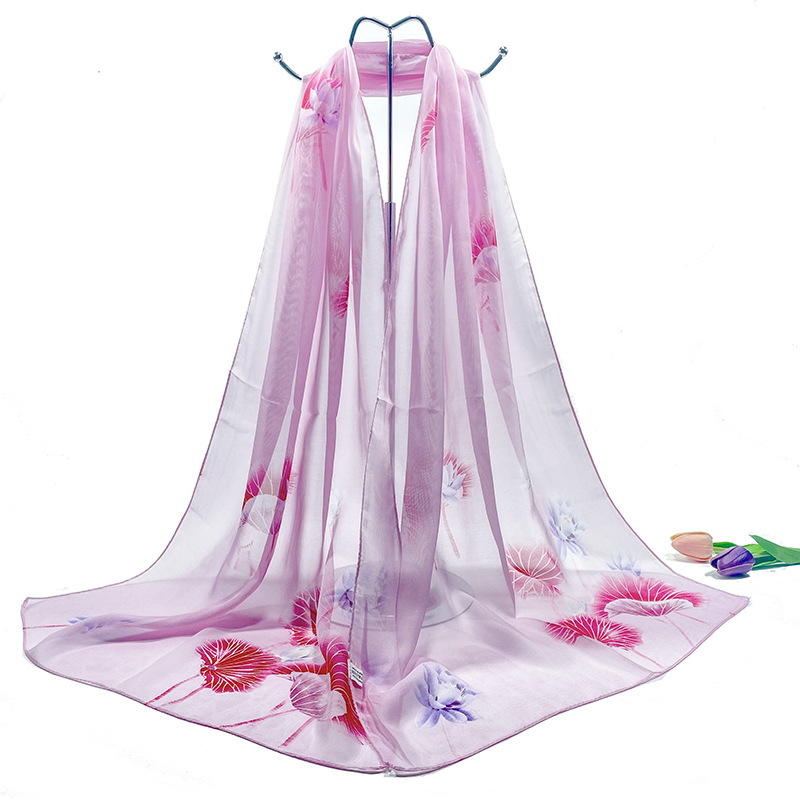 실크 스카프 여성 봄과 가을 선 스크린 쉬폰 인쇄 실크 스카프 롱 비치 타월 스톨 스카프 도매 선물 스카프