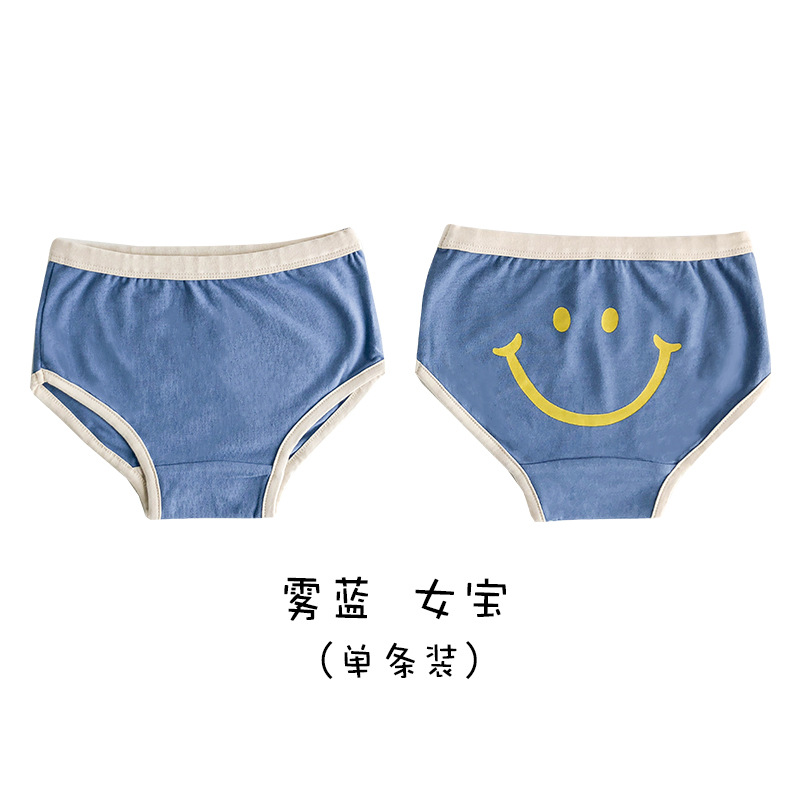 N008 어린이 속옷 제조 업체 도매 단 하나의 어린이 속옷 남성과 여성의 아기 면화 삼각형 스마일 얼굴 면화 반바지스토어 가기