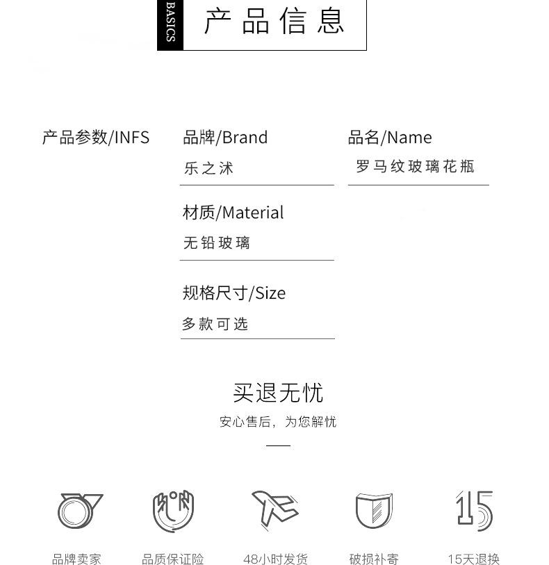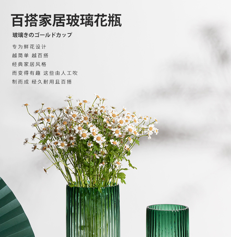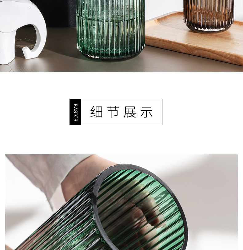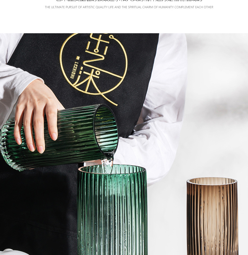 U 시리즈 기둥 유리 꽃병 세로 줄무늬 간단한 로마 거실 꽃꽂이 장식품 가정 장식 공예품스토어 가기
