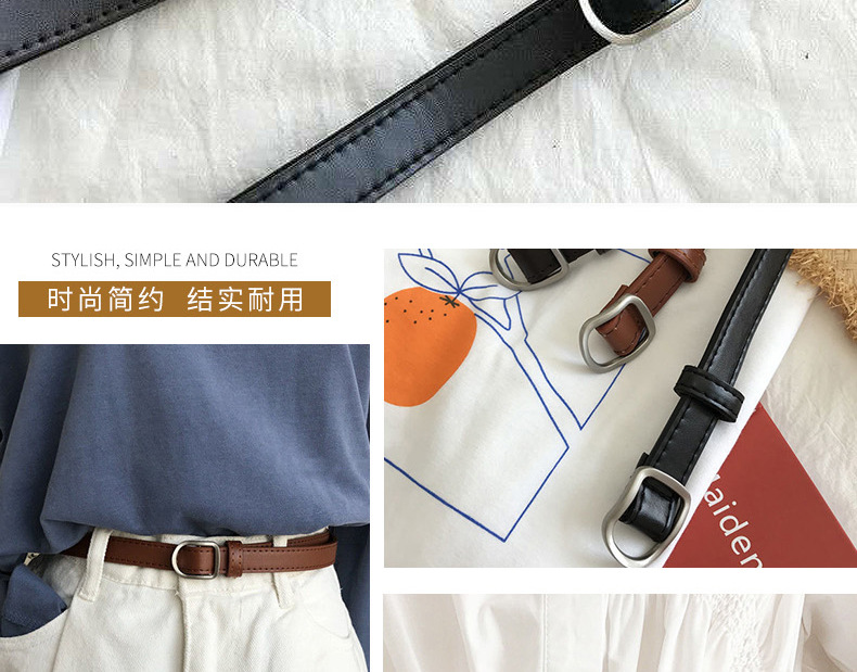 한국 동대문 새로운 한국 스타일 블랙 작은 벨트 비 홀 여성 학생 모든 일치 가죽 벨트 여자의 얇고 부드러운 노 홀