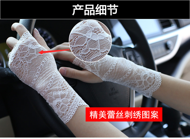 공장 직접 레이스 선 스크린 장갑 여성 여름 얇은 반 손가락 운전 흉터 문신 통기성 요가스토어 가기