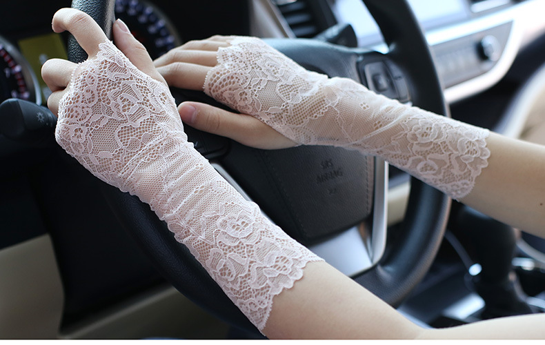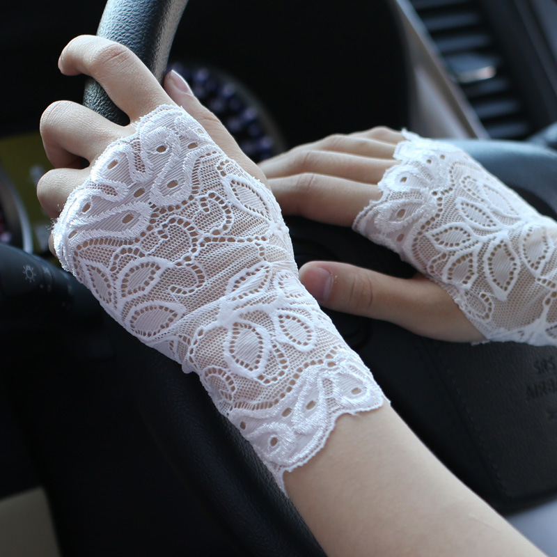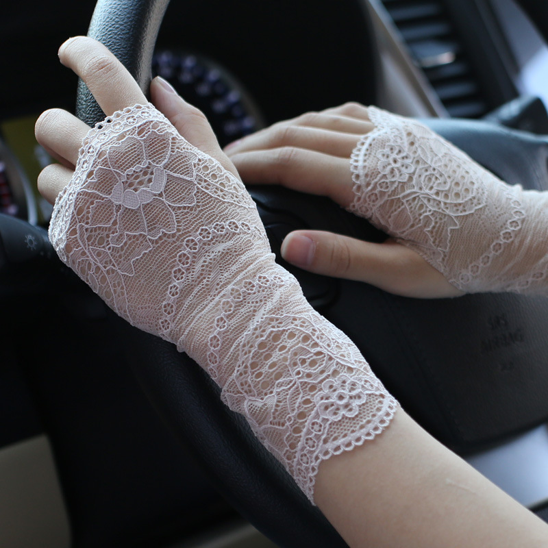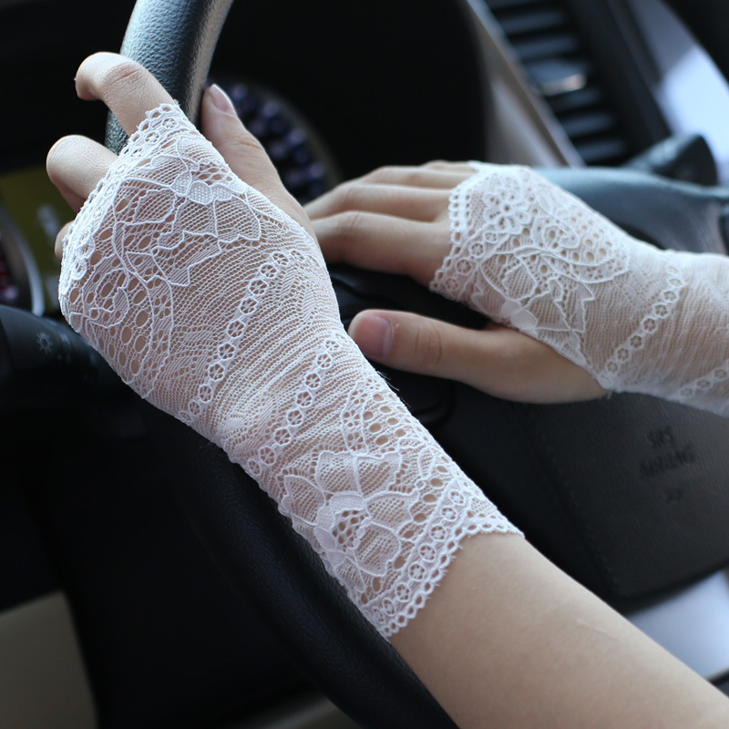 공장 직접 레이스 선 스크린 장갑 여성 여름 얇은 반 손가락 운전 흉터 문신 통기성 요가