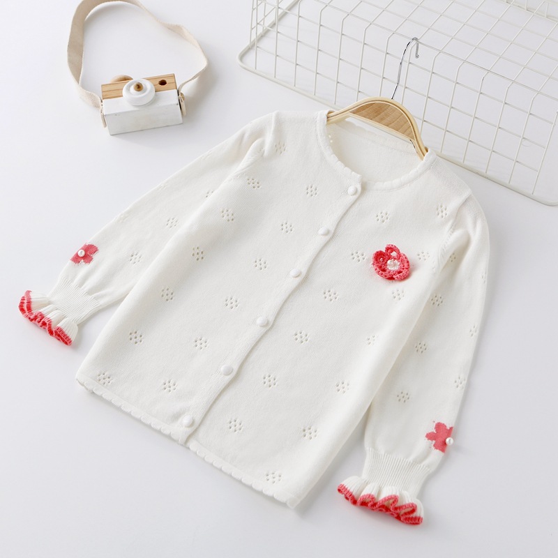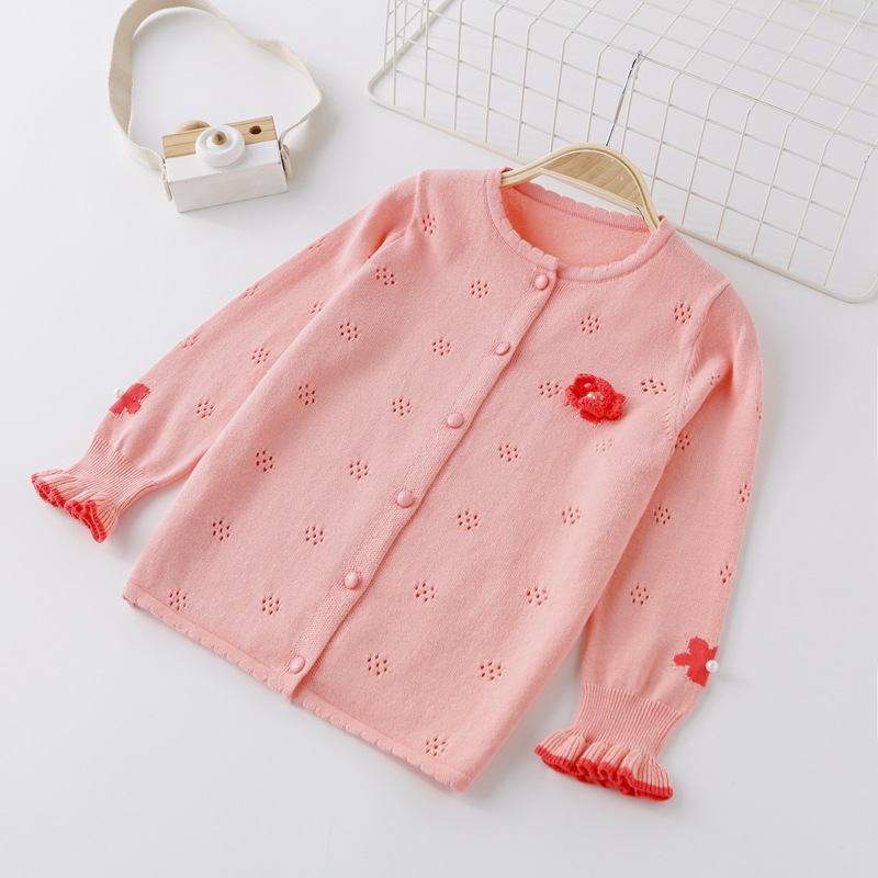 큰 어린이 니트웨어 얇은 코트 소녀 얇은 스웨터 카디건 여름 아침과 저녁 외부 매칭 스커트 카디건 탑