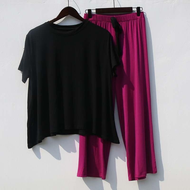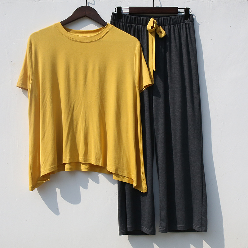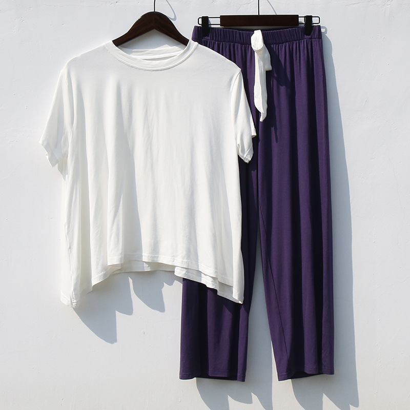 2024 봄과 여름 새로운 인터넷 연예인 대비 색 정장 여성 캐주얼 루즈 모달 홈 컬러 매칭 반팔 투피스 세트