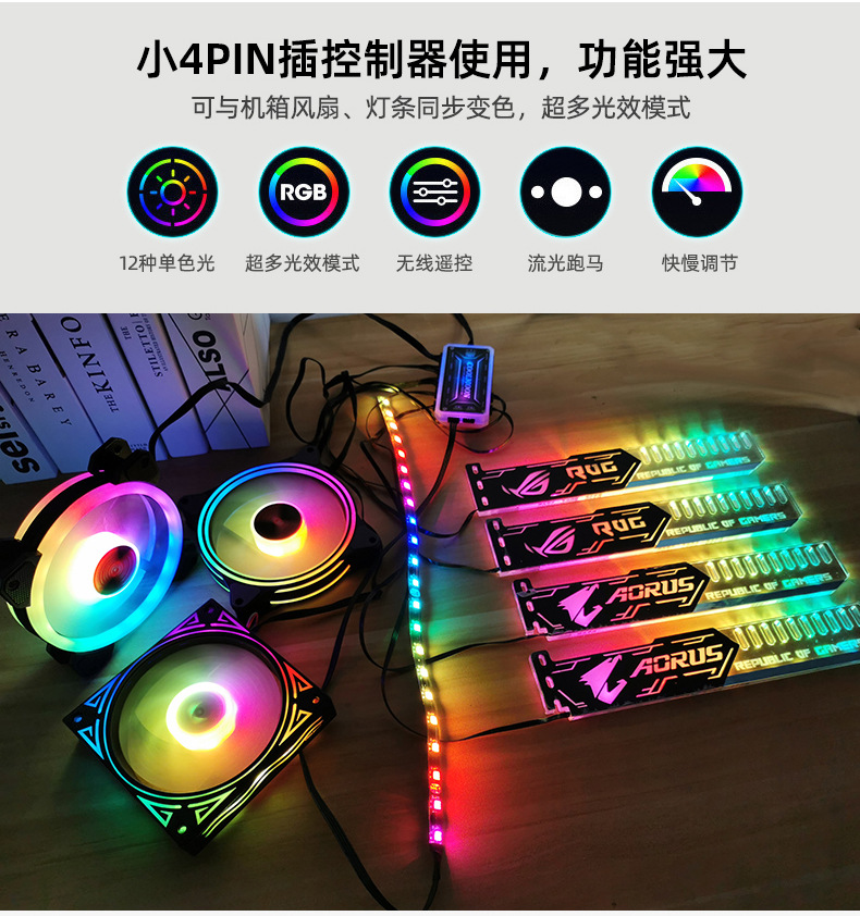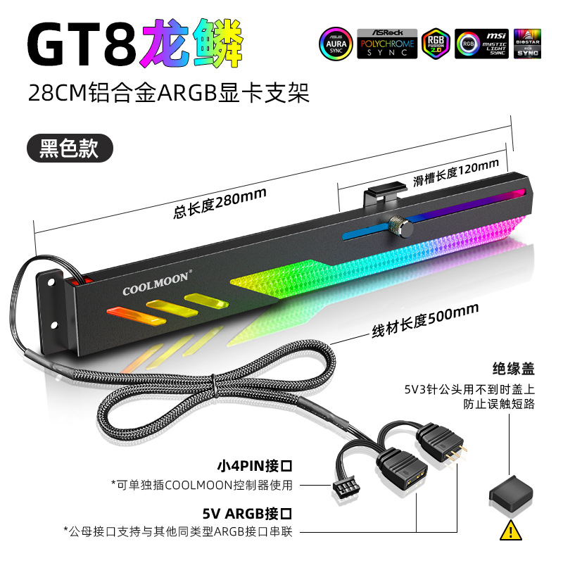 • 25cm 작은 조각 패턴 RGB 그래픽 카드 브래킷 (소형 4PIN 인터페이스)