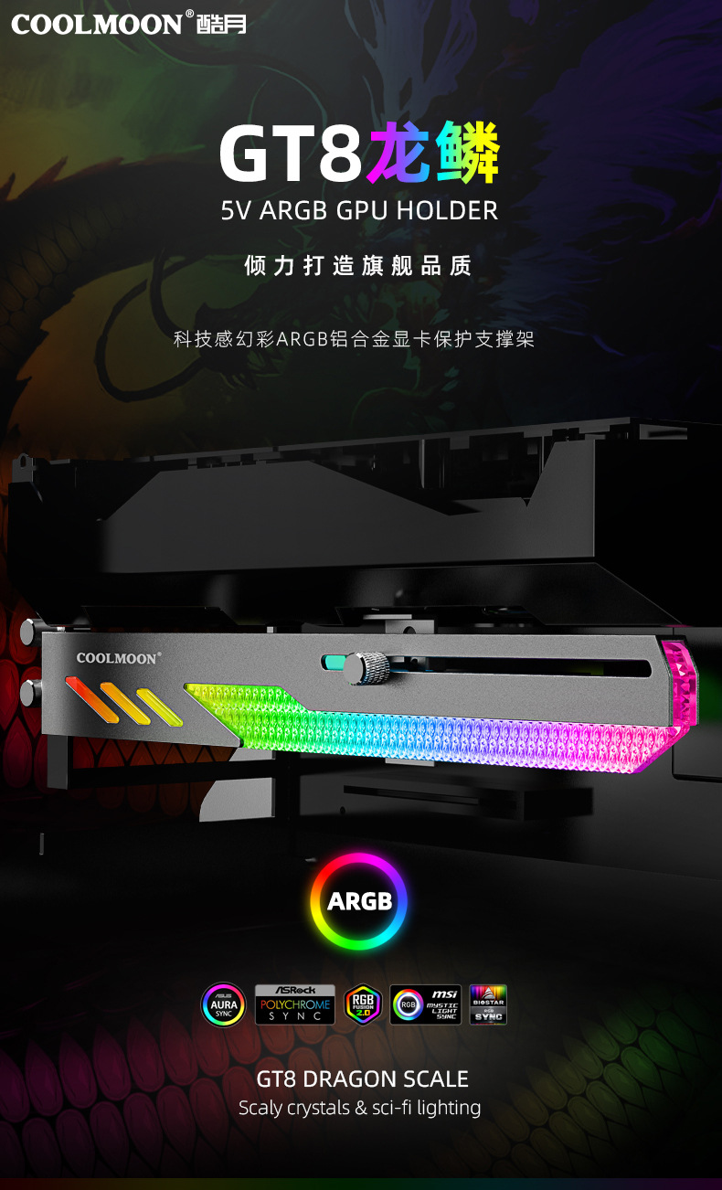 • 25cm 작은 조각 패턴 RGB 그래픽 카드 브래킷 (대형 4PIN 인터페이스)