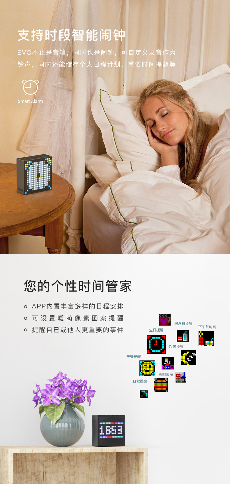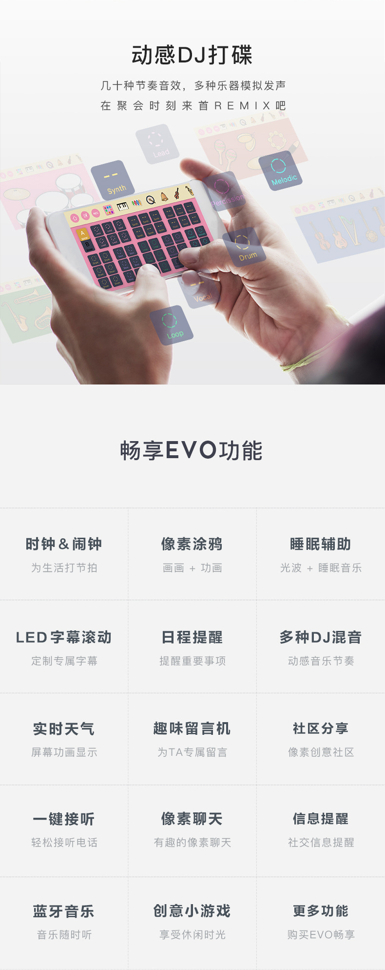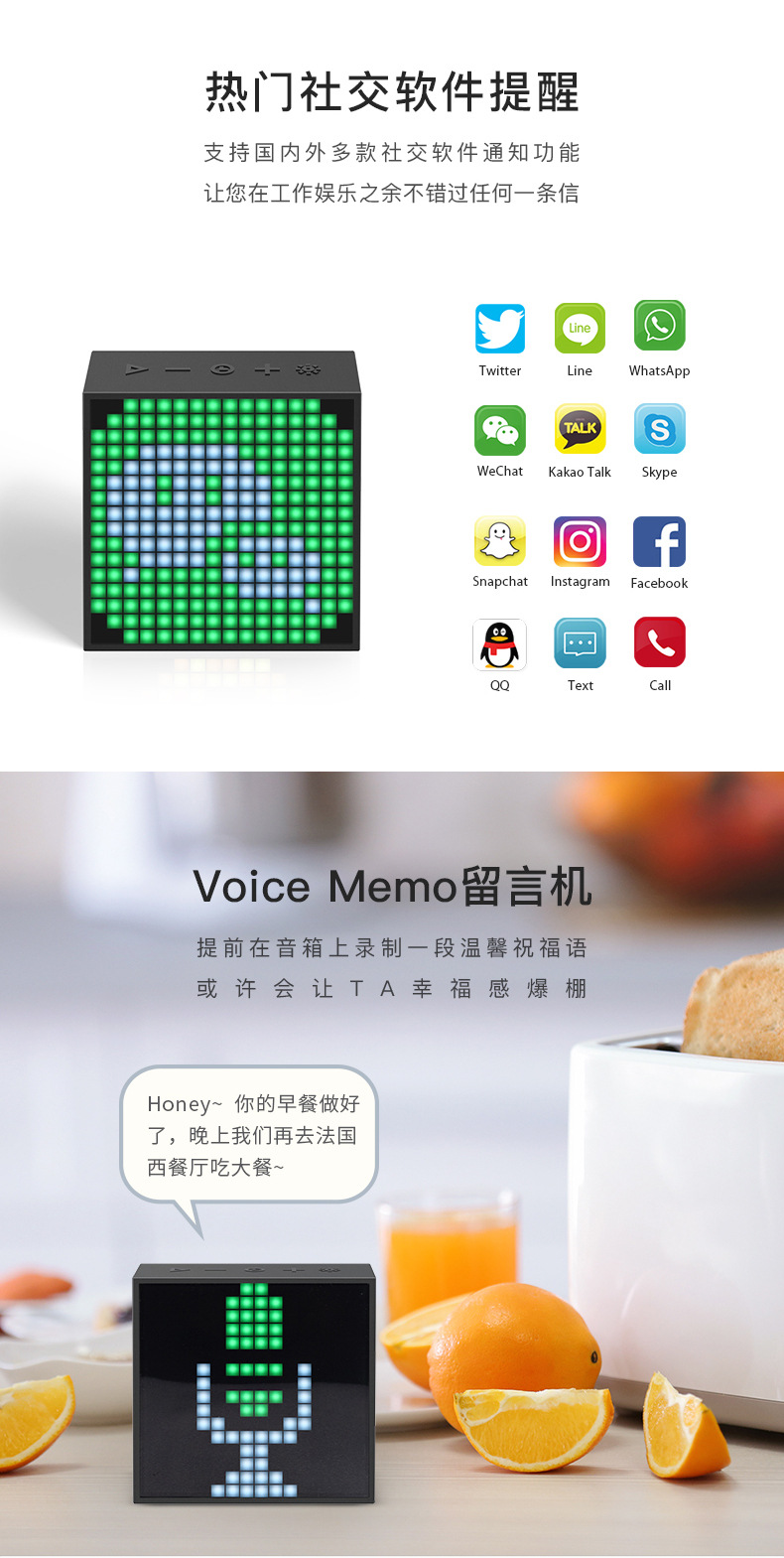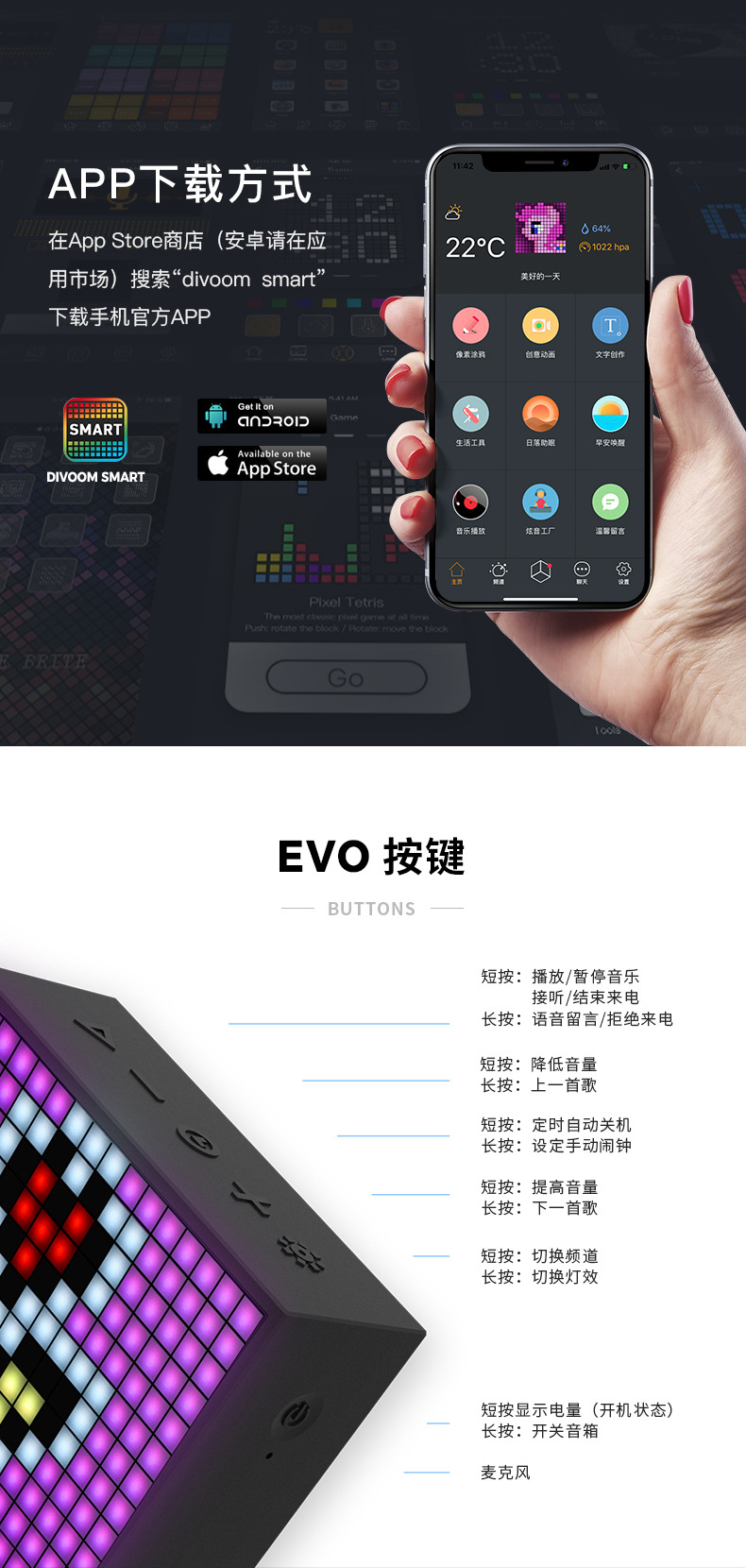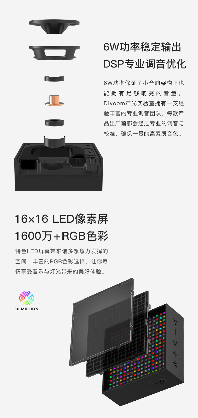 点音音箱(英文DIVOOM),自2006年创立于中国深圳,一直坚持"品牌出海战略",专注高品质制造和声光科技研发。2015年DIVOOM出品全球第一款像素音箱,并诞生围绕像素创作和社区营运的APP点音。到2019年,APP注册用户已经超过200万,集结了日本,德国,法国的一大批像素艺术家,我们正全力用创意智能硬件,工具型软件,高粘度社区打造一个有强烈中国互联网特征的新一代国际品牌。