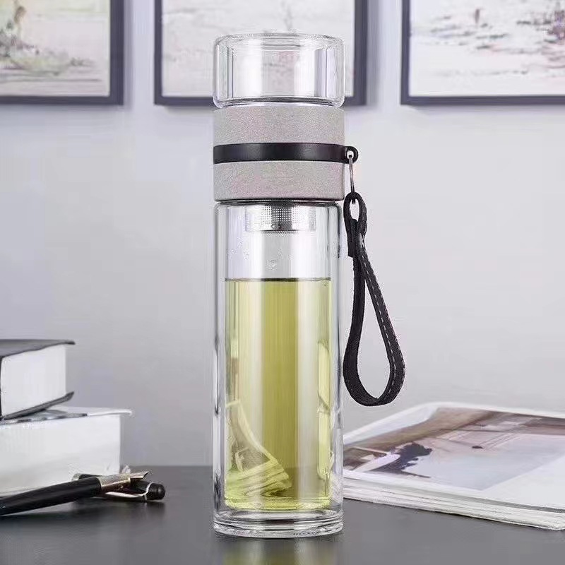 티 메이커 비즈니스 컵 단열 투명 유리 컵 선물 인쇄 로고 차 물 분리 2 층 컵스토어 가기