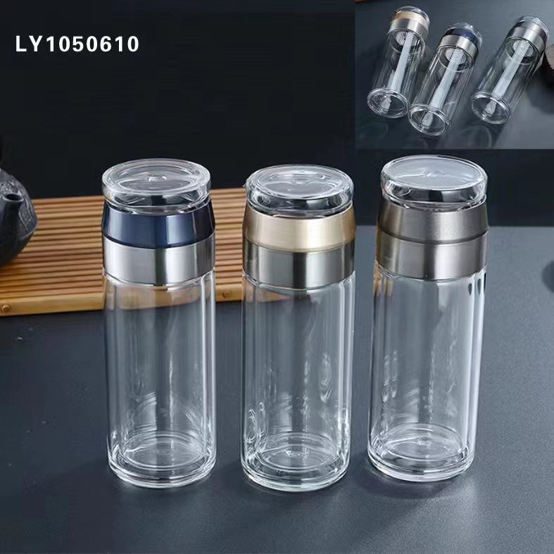 티 메이커 비즈니스 컵 단열 투명 유리 컵 선물 인쇄 로고 차 물 분리 2 층 컵