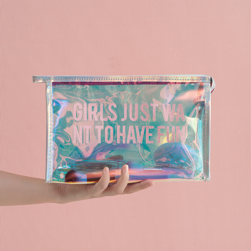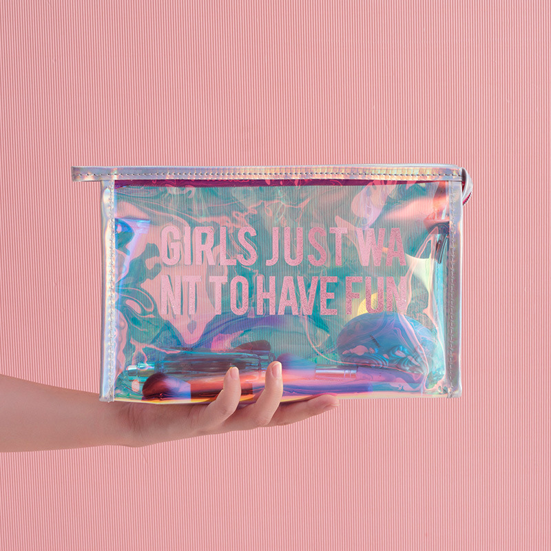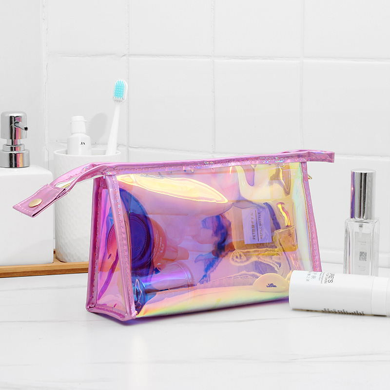 투명 레이저 화장품 가방 여성 휴대용 간단한 방수 여행 PVC 화장품 보관 가방 도매 인쇄 로고스토어 가기