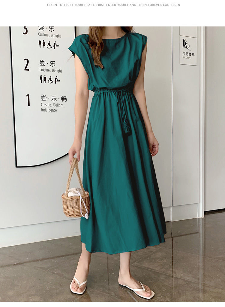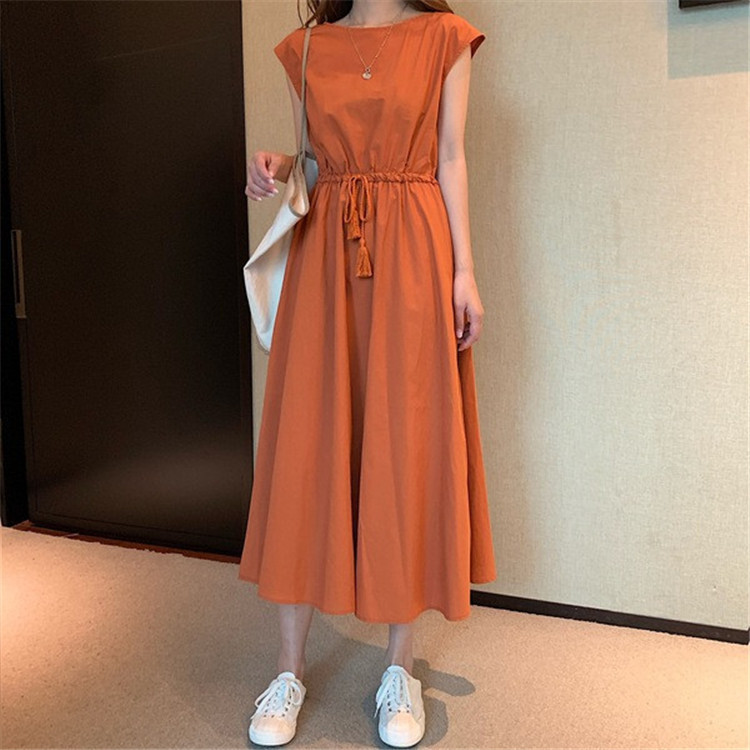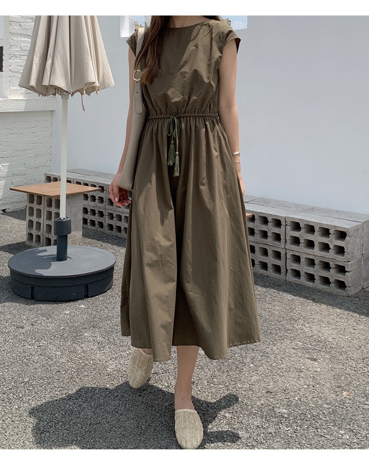 9 색 5 사이즈 재고 예술적인 대형 스윙 원피스 여름 새 허리 느슨한 플러스 사이즈 면 린넨 중간 길이 원피스스토어 가기