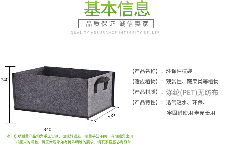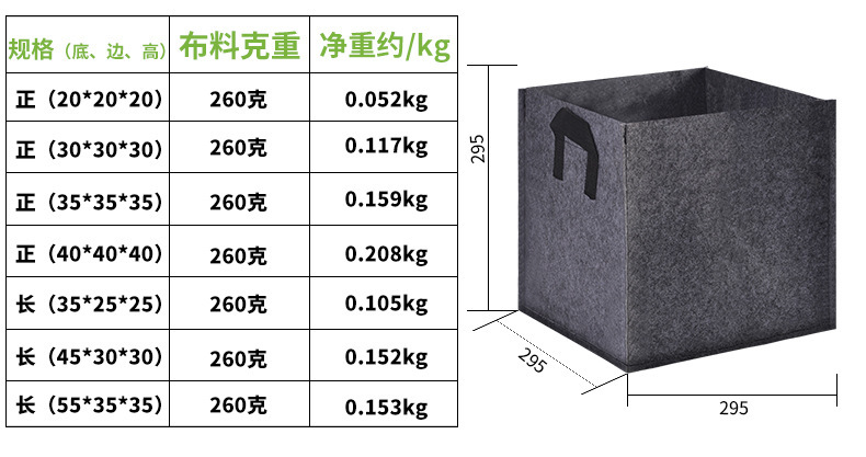 펠트 직사각형 심기 가방 뿌리 제어 심기 가방 심기 가방 부직포 가방 발코니 꽃 묘목 상자 식물 가방