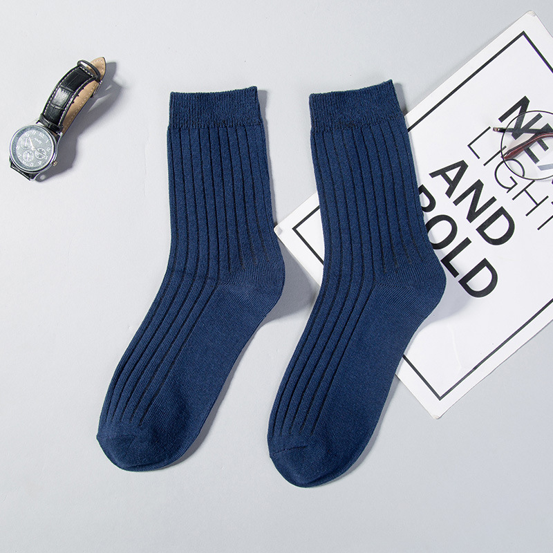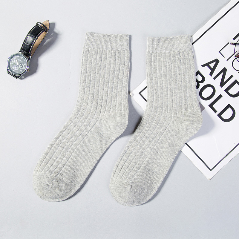 양말 남성용 흑백 면 가을과 겨울 땀 흡수 탈취제 스타킹 사계절 남성 하이 비즈니스 양말 더블 니들스토어 가기