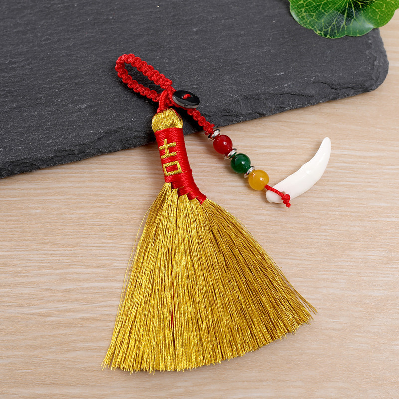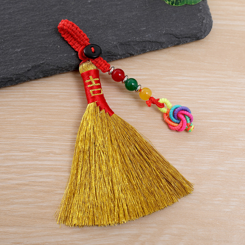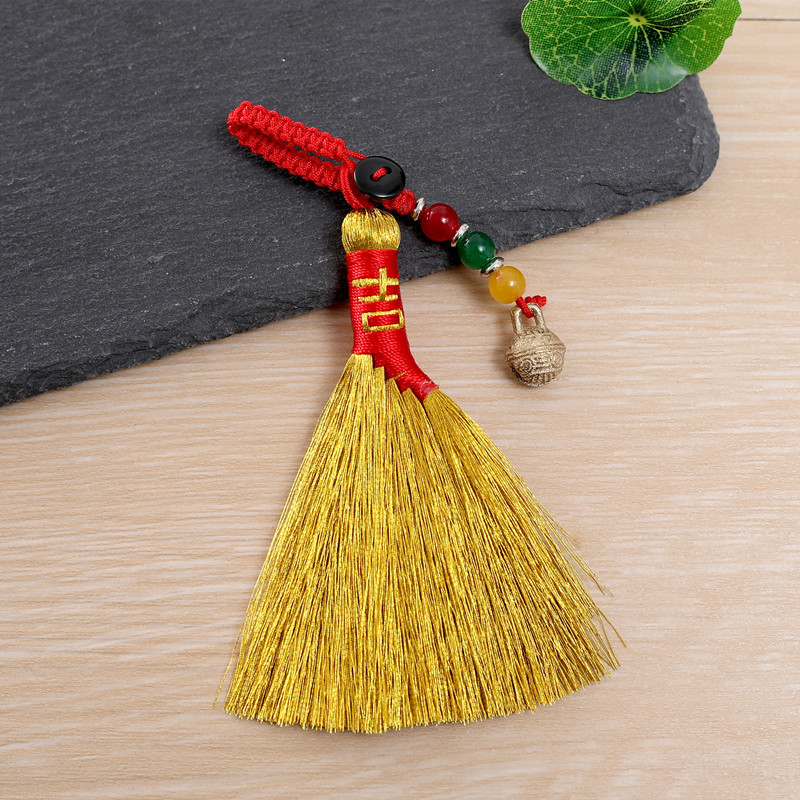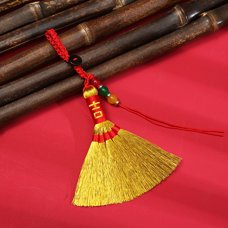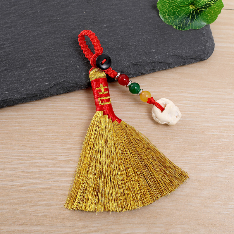 Douyin의 동일한 땋은 용 보트 축제 금 빗자루 펜던트는 불운을 퇴치하기 위해 이동합니다. 수제 빗자루 아기 충격 침대 옆 펜던트스토어 가기