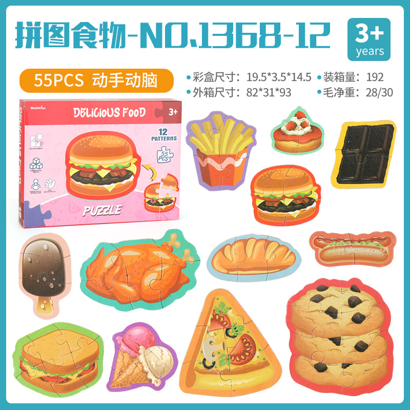 创意儿童益智12款纸质DIY早教平面拼图幼儿园大块易抓亲子互动