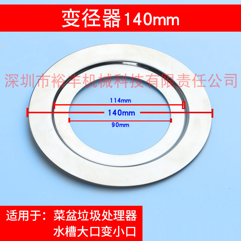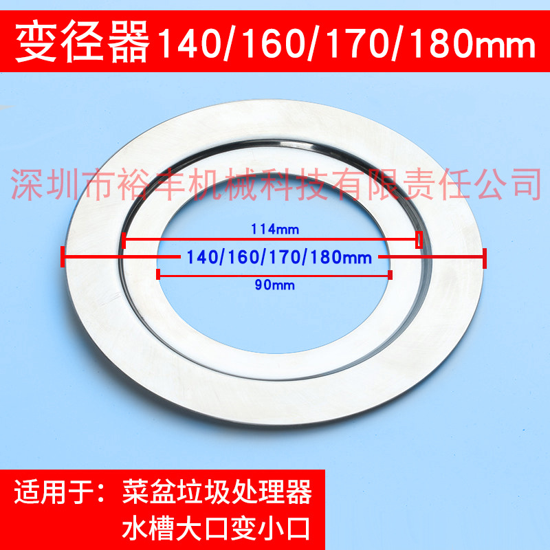 如果落水口径为140mm、160mm、170mm、180mm时,需要安装水槽变径器后,方能安装食物垃圾处理器。