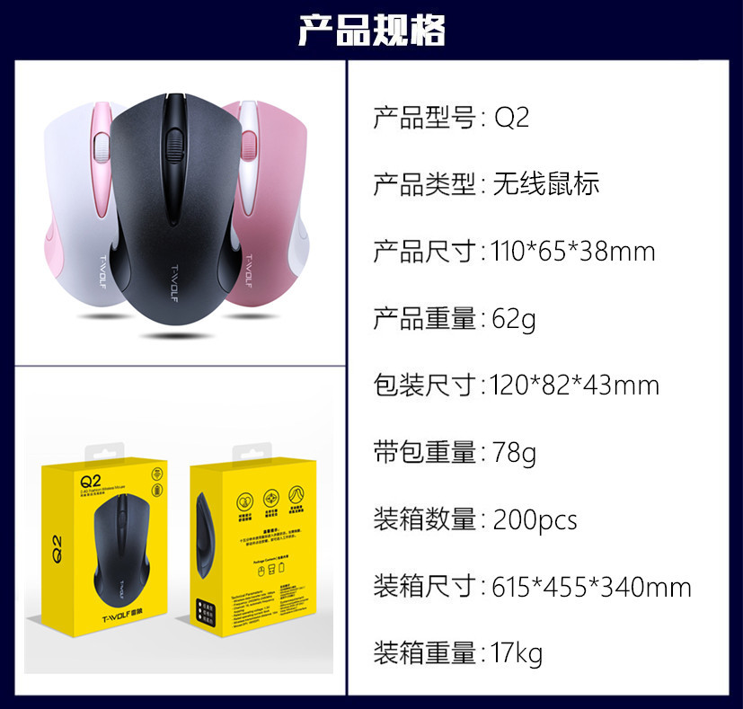 New Thunder Wolf Q2 노트북 무선 마우스 소형 사무실 컴퓨터 주변기기 마우스 베스트 셀러 재고