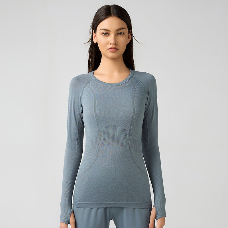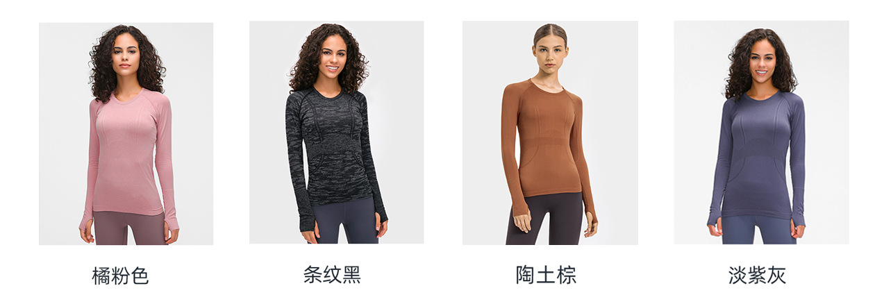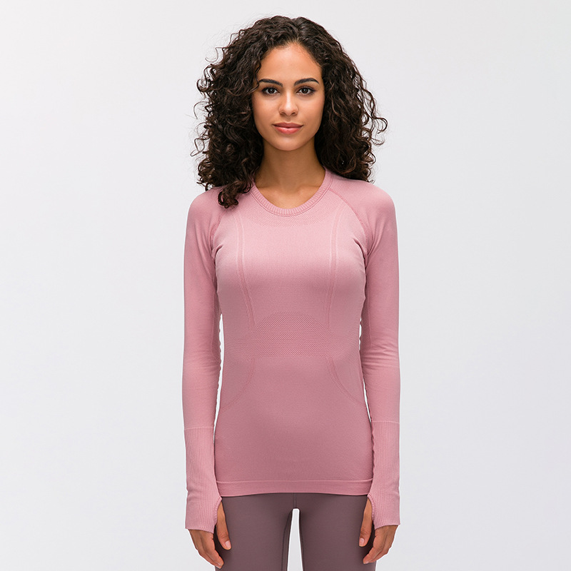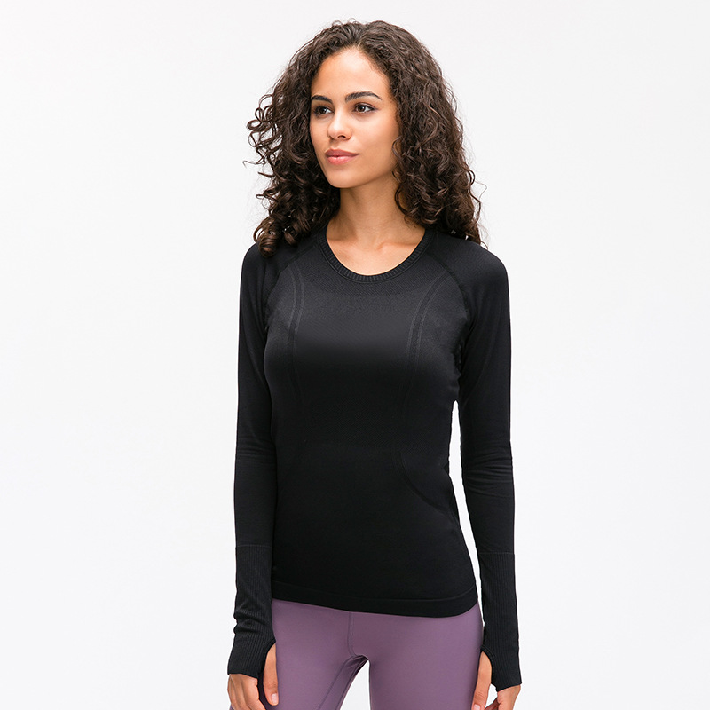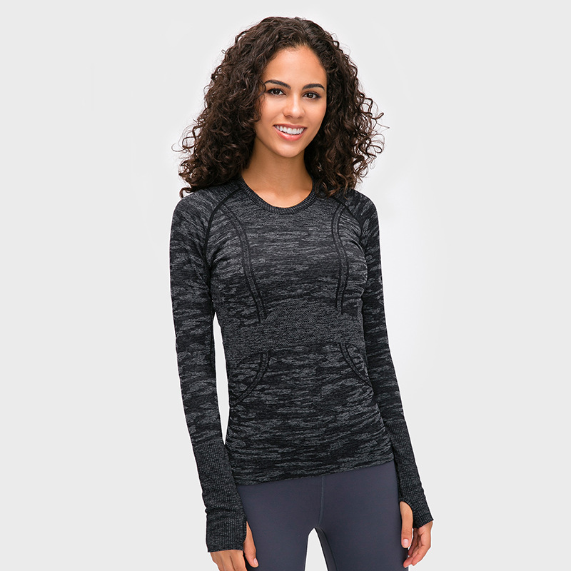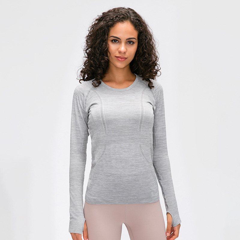 새로운 슬림 통기성 요가 긴 소매 여성용 긴 소매 라운드 넥 스포츠 티셔츠 달리기 피트니스 탑 D19083