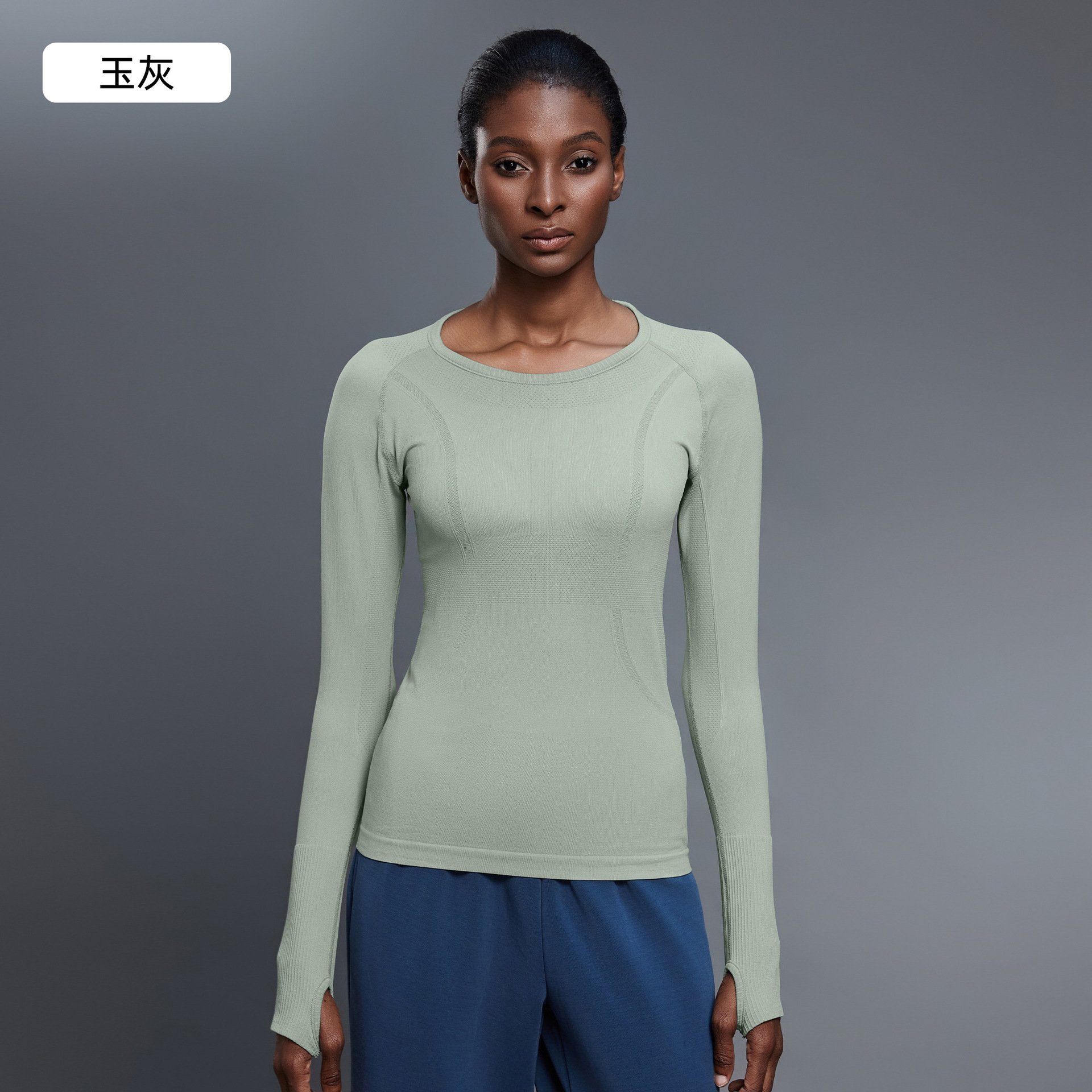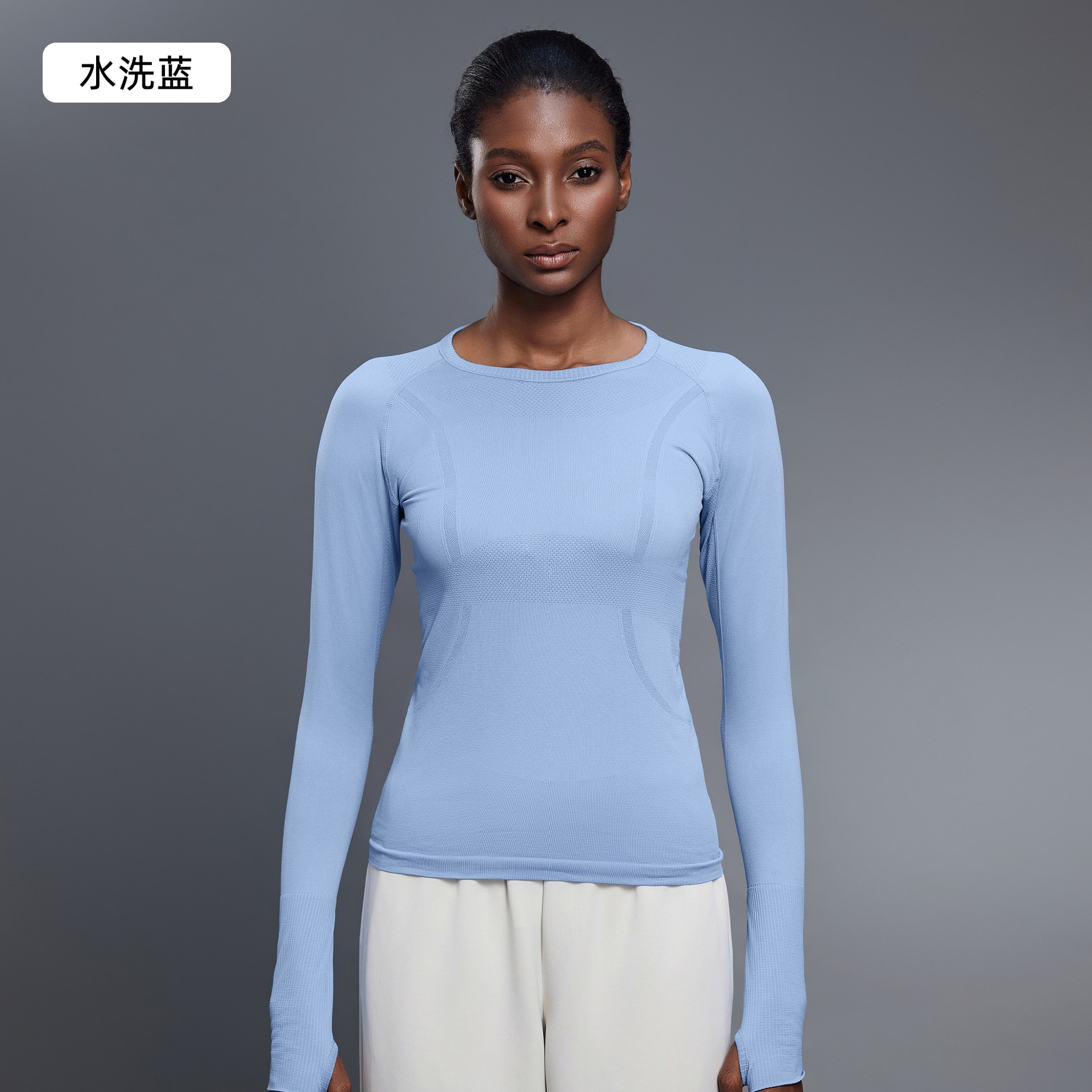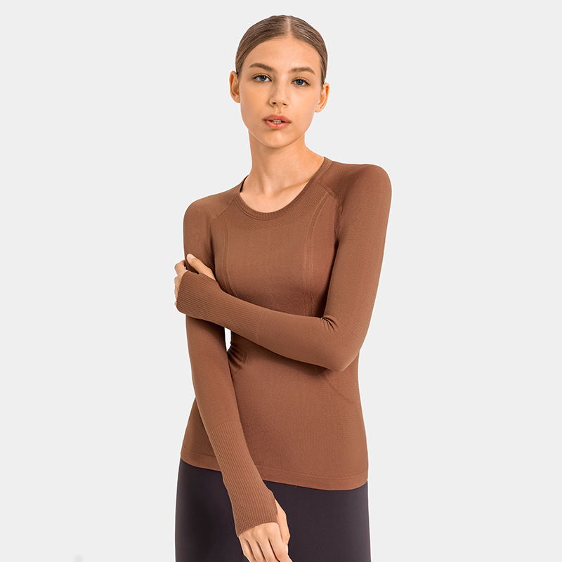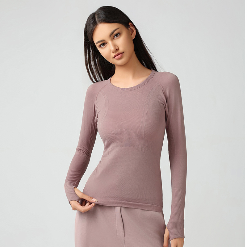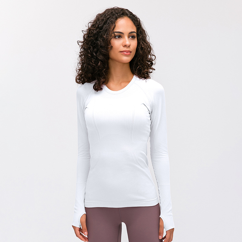새로운 슬림 통기성 요가 긴 소매 여성용 긴 소매 라운드 넥 스포츠 티셔츠 달리기 피트니스 탑 D19083