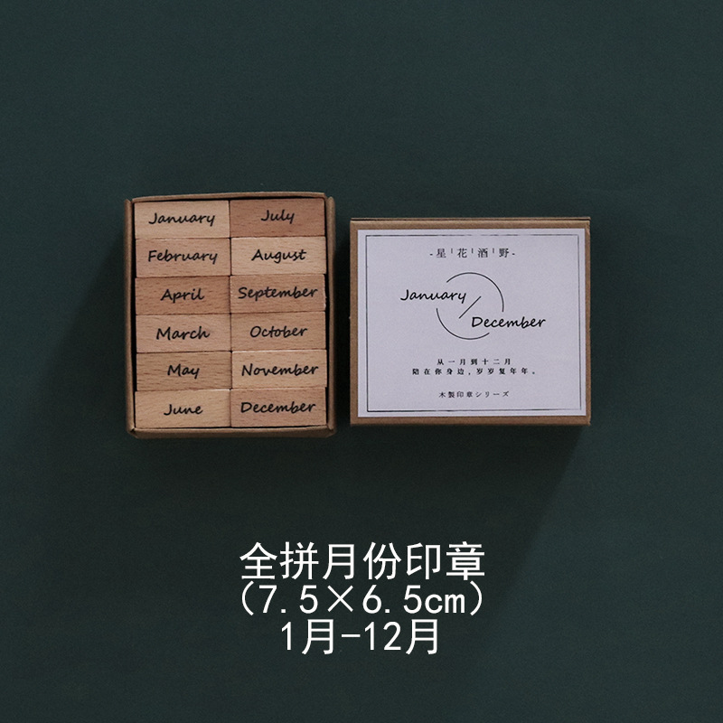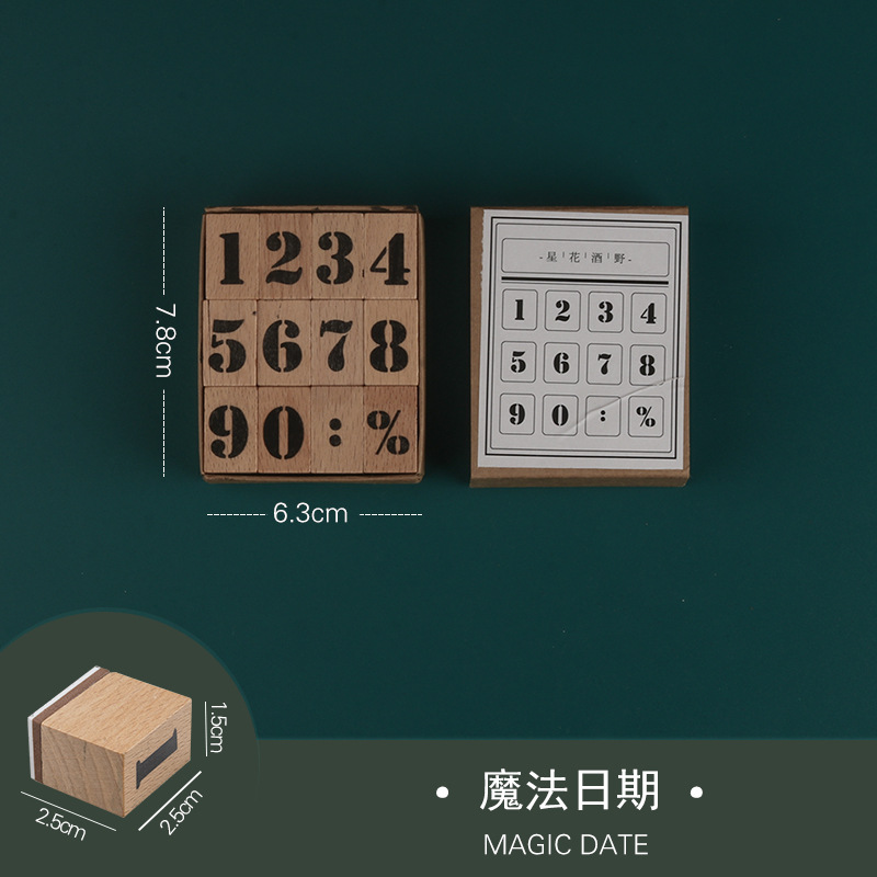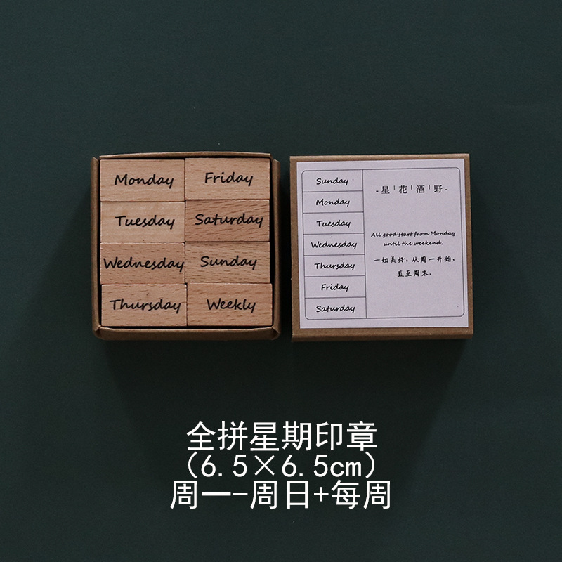 나무 인감 복고풍 달 주 기본 손 계정 디지털 손 계정 매일 지불 날짜 세트 재고