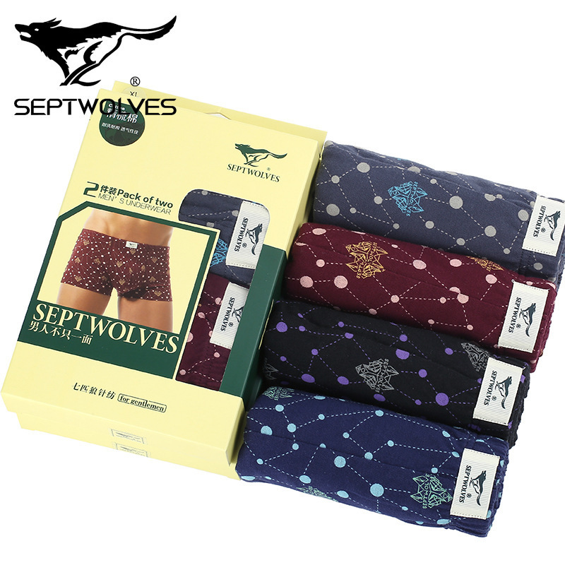 일곱 늑대 면 남자의 속옷 통기성 면 느슨한 플러스 사이즈 청소년 스포츠 복서 남자의 2스토어 가기