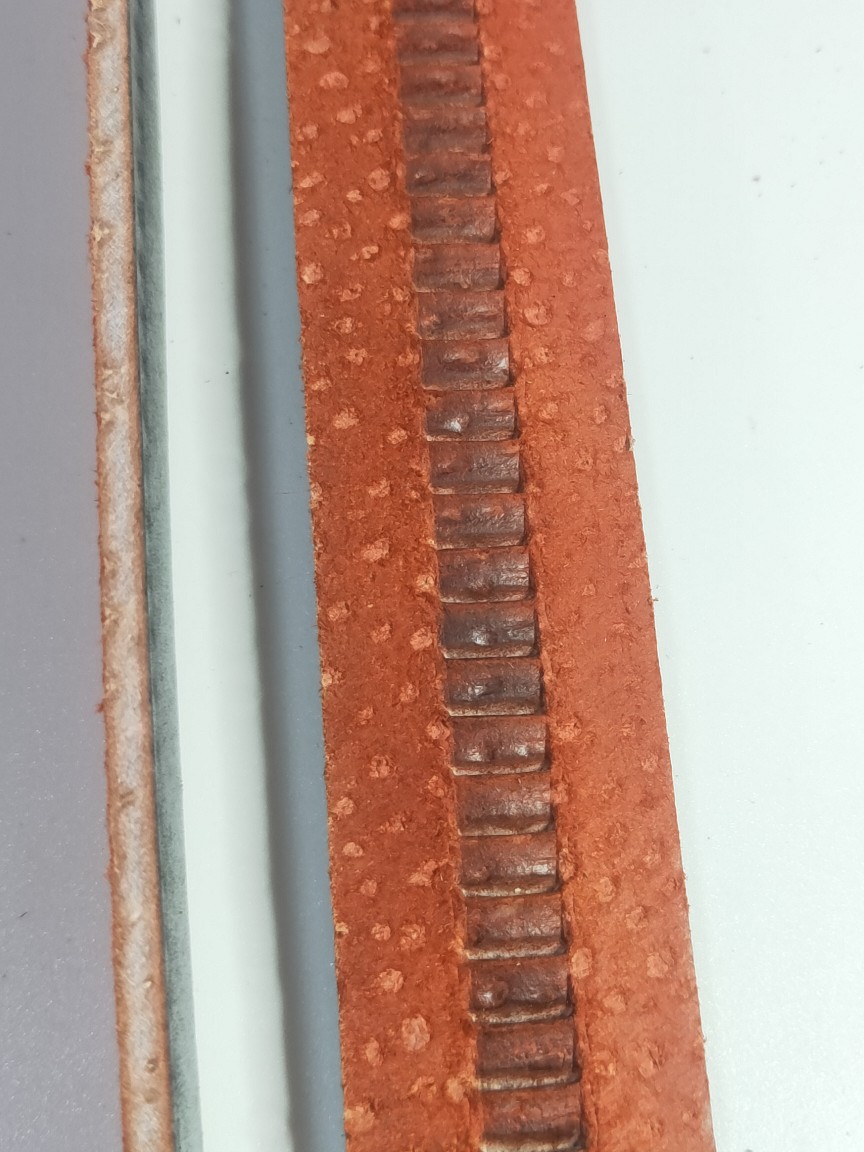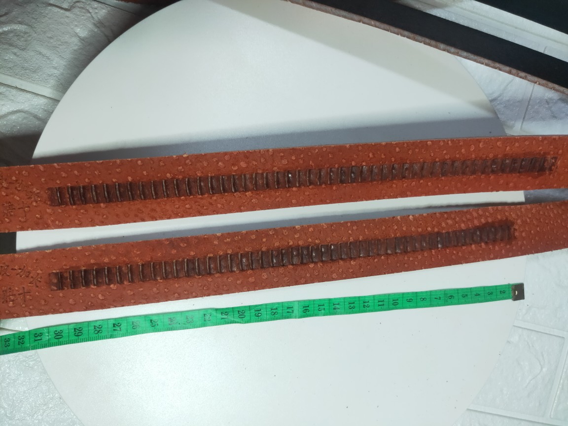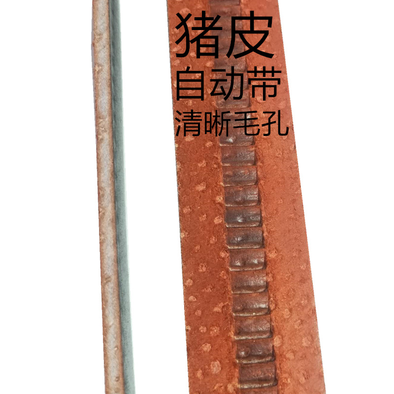 此款是纯猪皮切割皮带,高温高压成型,牙齿自动,整张猪皮本身有长有短不规则,这个是大概估算的长度,