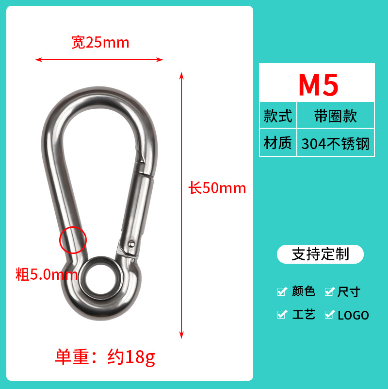 공급 조롱박형 304 스테인레스 스프링 버클 스프링 훅 등산 버클 도그 체인 버클 심플 버클 연결 링