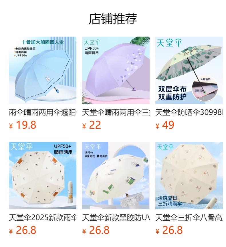 天堂伞正品 晴雨两用 黑胶防晒 手动折叠 银飞杏舞