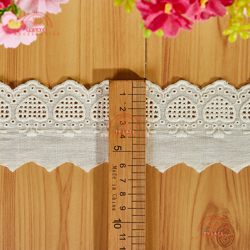 천연 레이스 트림 6cm 속이 빈 하트 딸기 모양 코마면 자수 여성복 아동복 의류 섬유 부자재