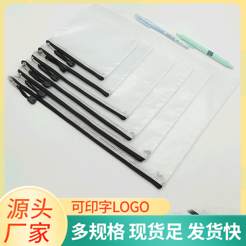 메쉬 블랙 지퍼 파일백 맞춤형 PVC 투명 두꺼운 방수 문구 가방 A4 해외 무역 수출용 수납 가방