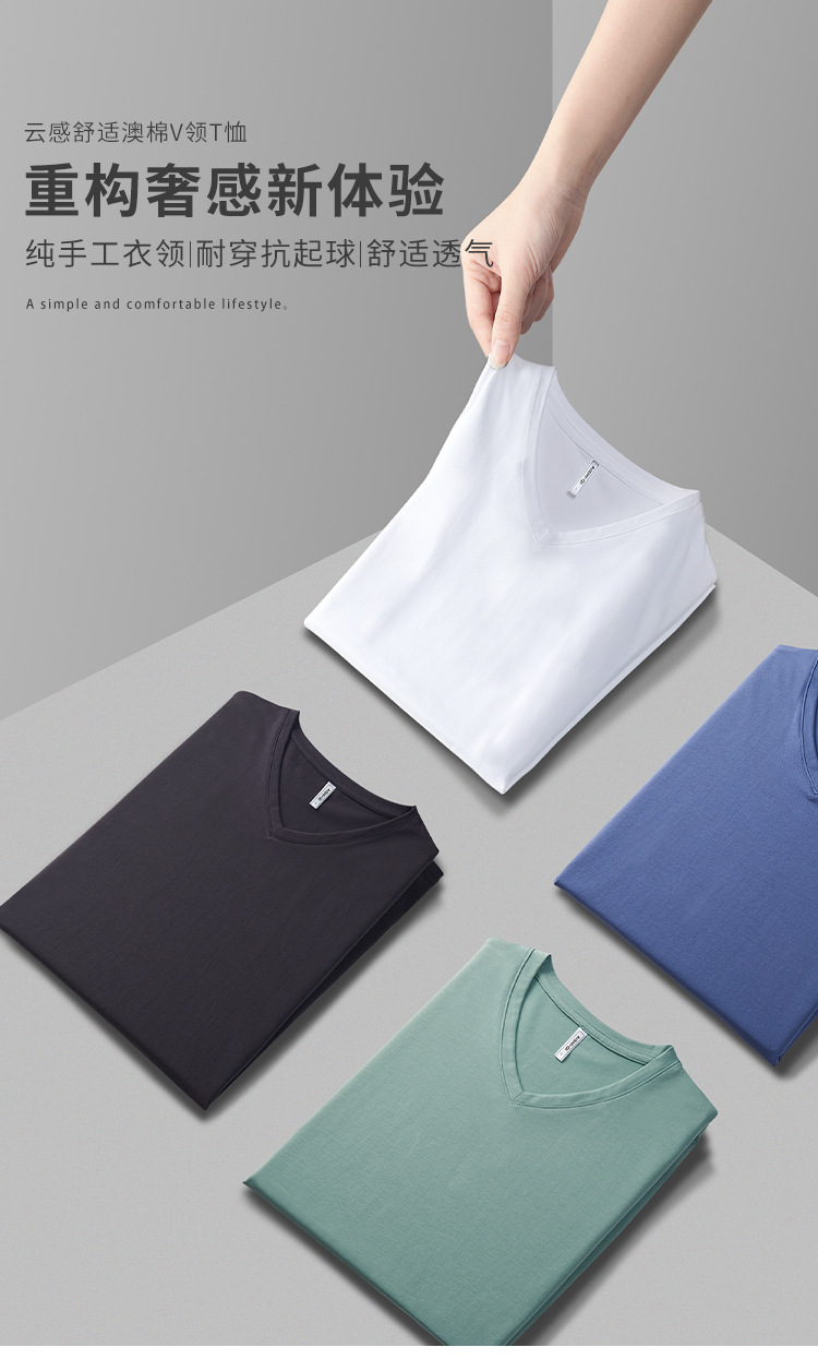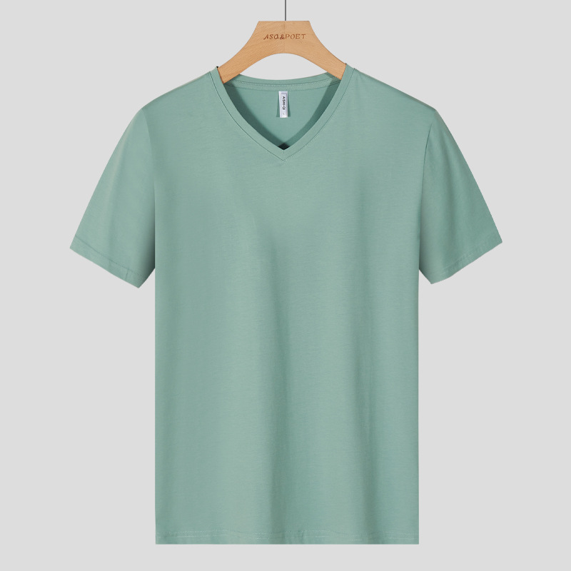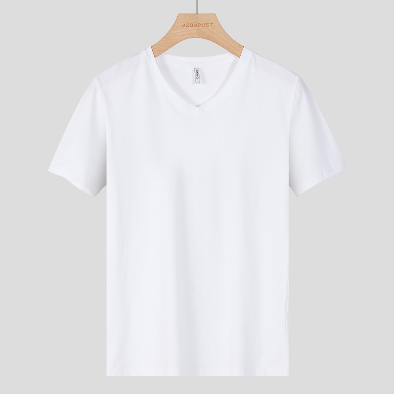 남성용 이너웨어 브이넥 반팔 티셔츠 남성용 로우넥 탑 기본 단색 반팔 작업복 맞춤 로고 인쇄스토어 가기
