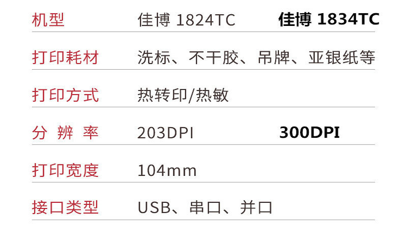 JiaBo 1924TC 바코드 프린터 1934 세탁 라벨/천 라벨 프린터, 드라이클리닝 전문점용