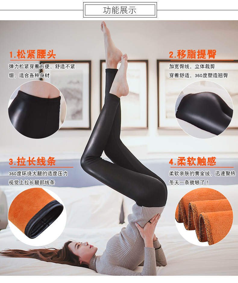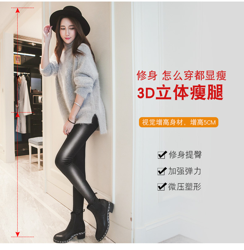 가죽 바지 여자의 모조 가죽 기모 레깅스 여자의 가을과 겨울 얇은 겉옷 슬리밍 레깅스 여자의 패션 캐주얼 가죽 바지