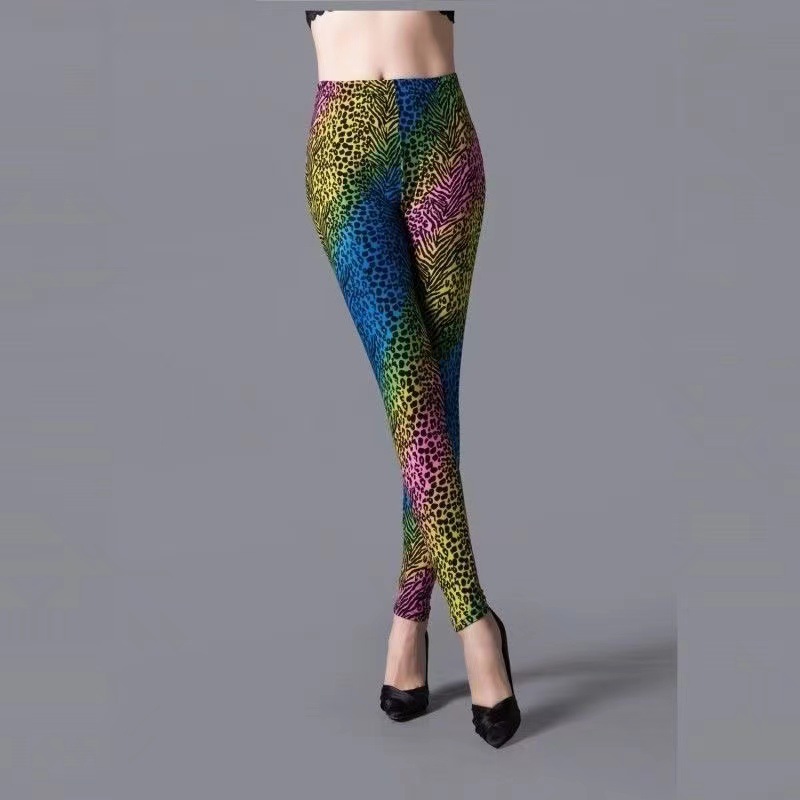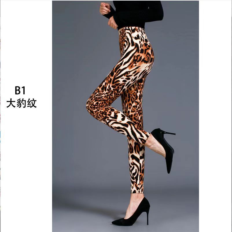 유럽과 미국 컬러 레오파드 무늬 레깅스 스트레치 여성 바지 밀크 실크 샌딩 타이트 팬츠 플러스 대형 사이즈스토어 가기