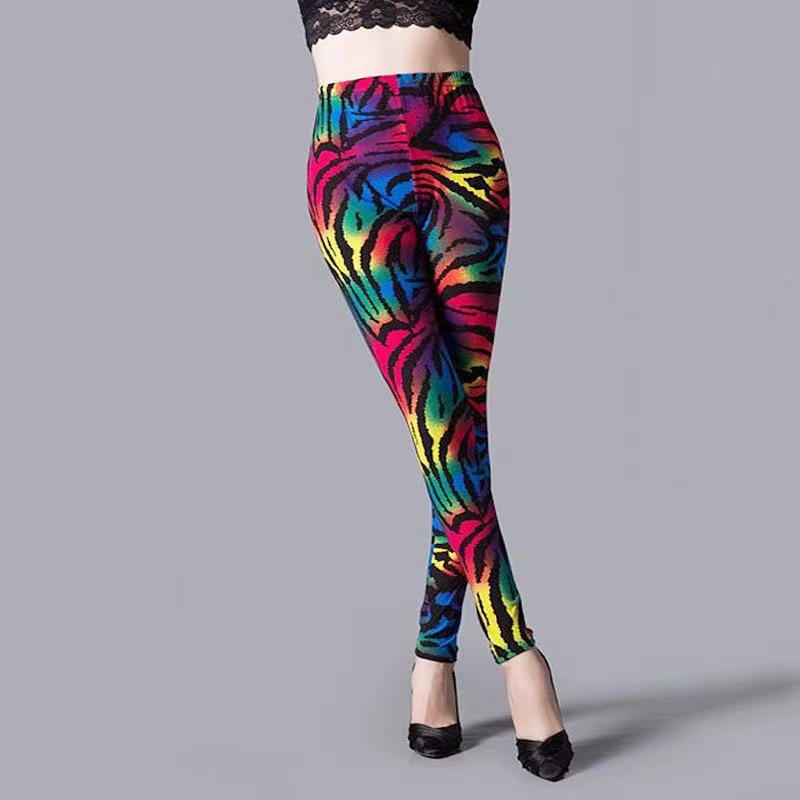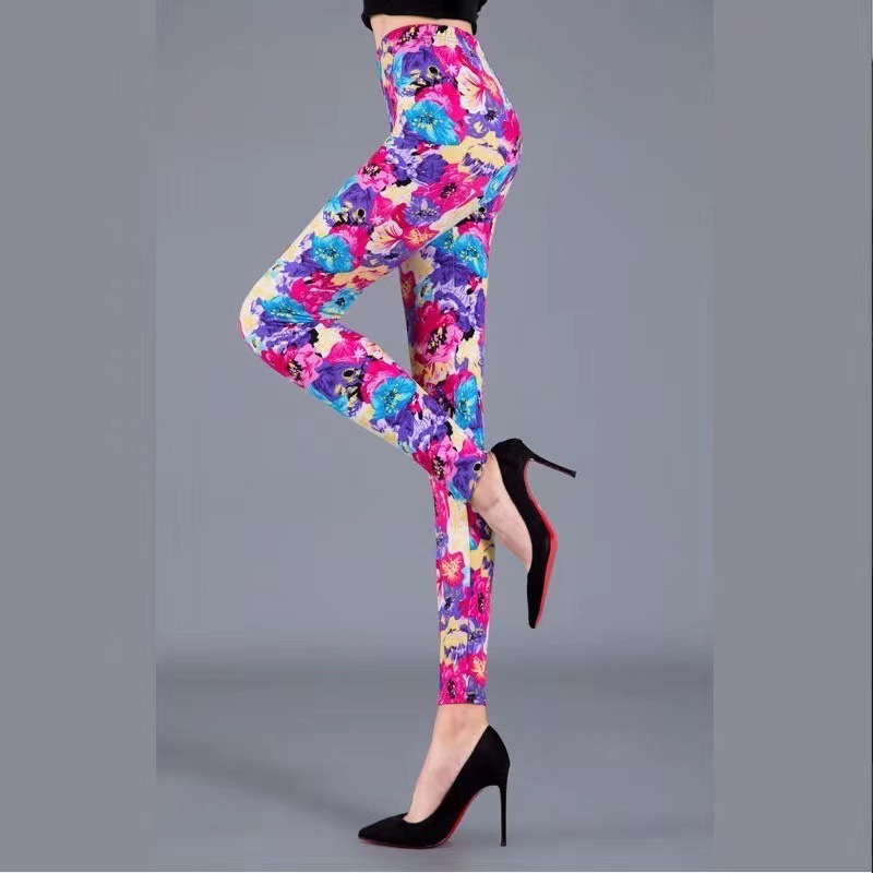 유럽과 미국 컬러 레오파드 무늬 레깅스 스트레치 여성 바지 밀크 실크 샌딩 타이트 팬츠 플러스 대형 사이즈