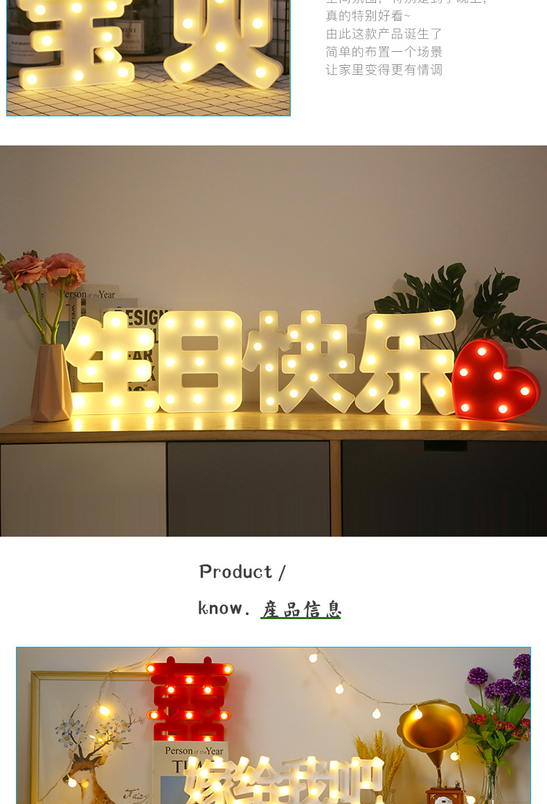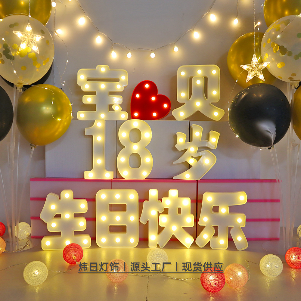 생일 축하 램프, 프러포즈, 고백 레터 램프, 파티 장면 레이아웃, LED 램프, 케이크 장식 램프, 빛나는 램프 플래카드