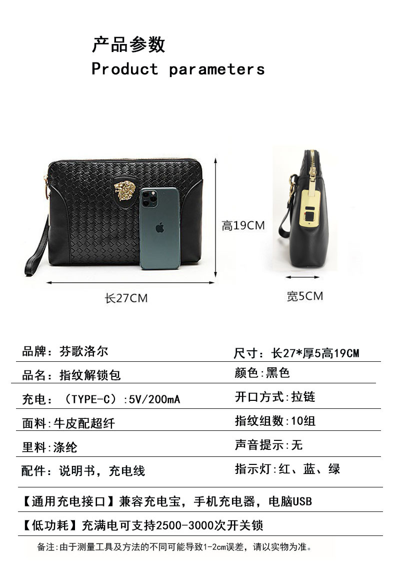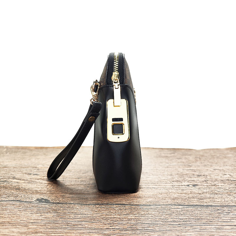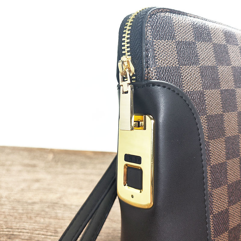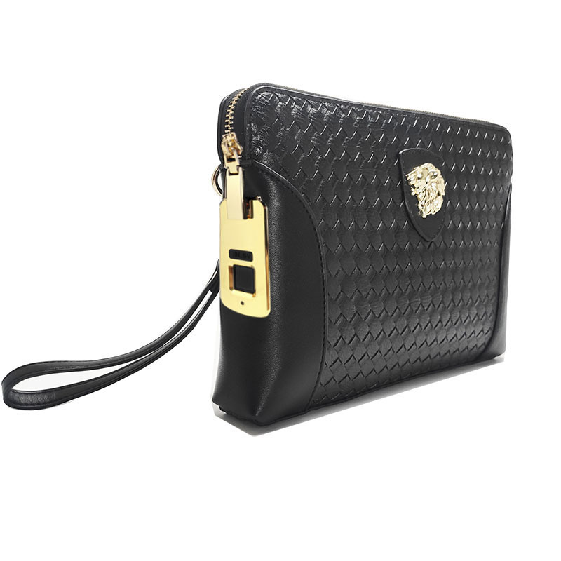 지문 잠금 장치가 있는 남성용 가죽 클러치백, 휴대용 지문 잠금 해제 기능, 비즈니스 및 출퇴근용, 고급스럽고 가벼운 럭셔리 핸드백
