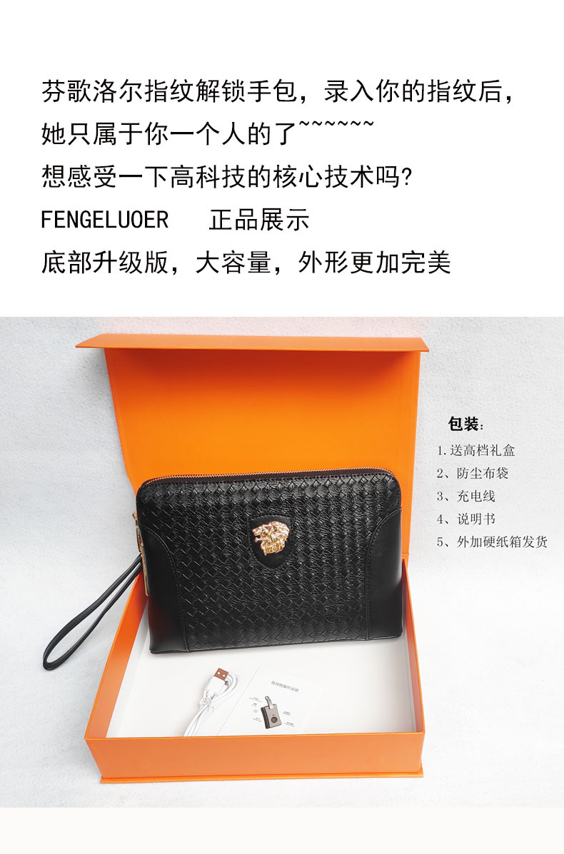 지문 잠금 장치가 있는 남성용 가죽 클러치백, 휴대용 지문 잠금 해제 기능, 비즈니스 및 출퇴근용, 고급스럽고 가벼운 럭셔리 핸드백스토어 가기