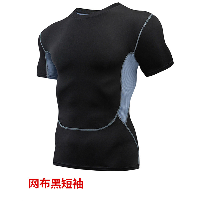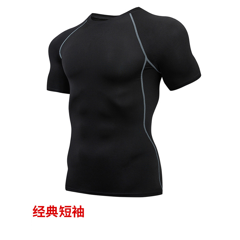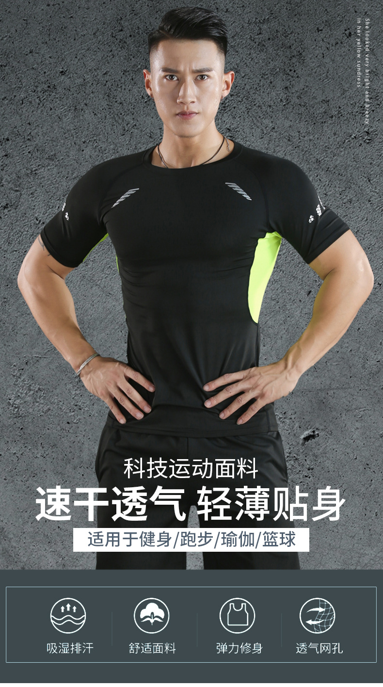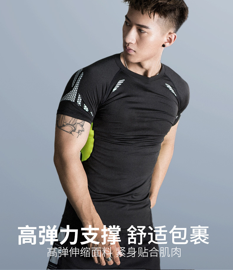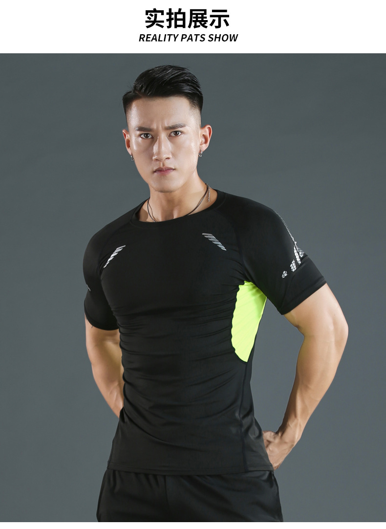 여름 피트니스 의류 스포츠 꽉 옷 남자 농구 달리기 반팔 탄성 훈련 속건 의류 티셔츠 베이스 셔츠