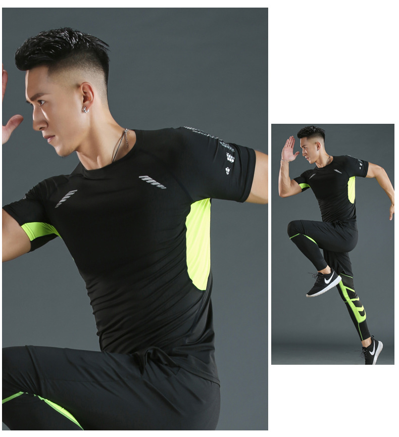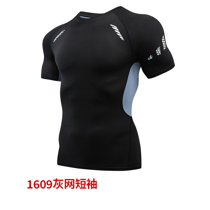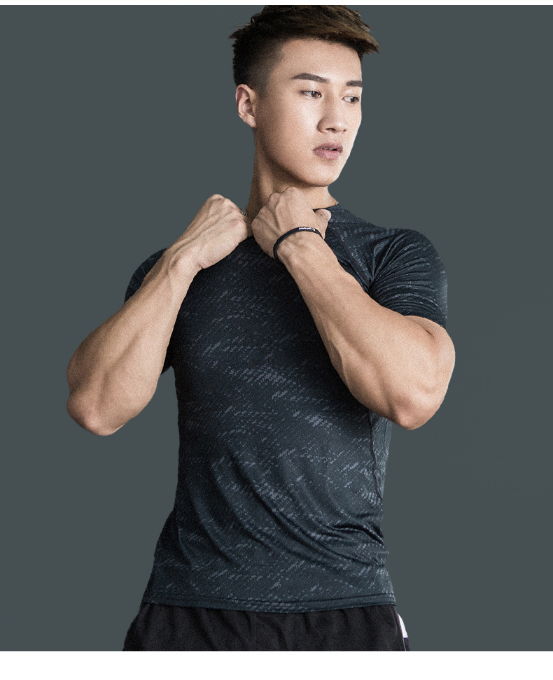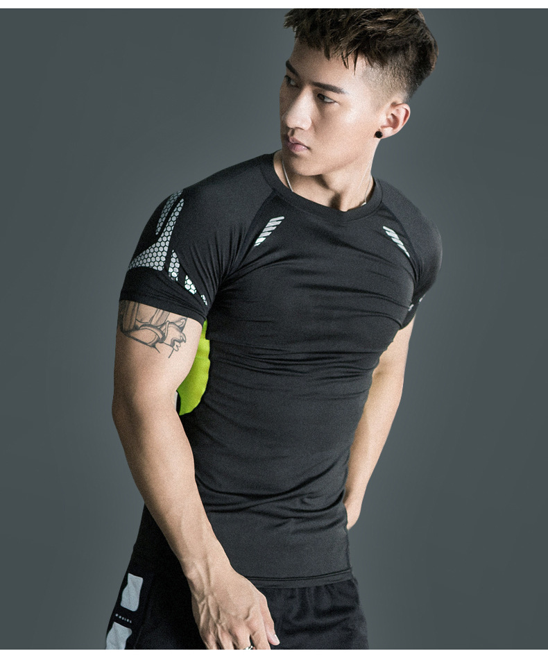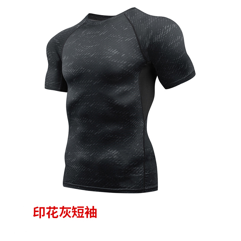 여름 피트니스 의류 스포츠 꽉 옷 남자 농구 달리기 반팔 탄성 훈련 속건 의류 티셔츠 베이스 셔츠