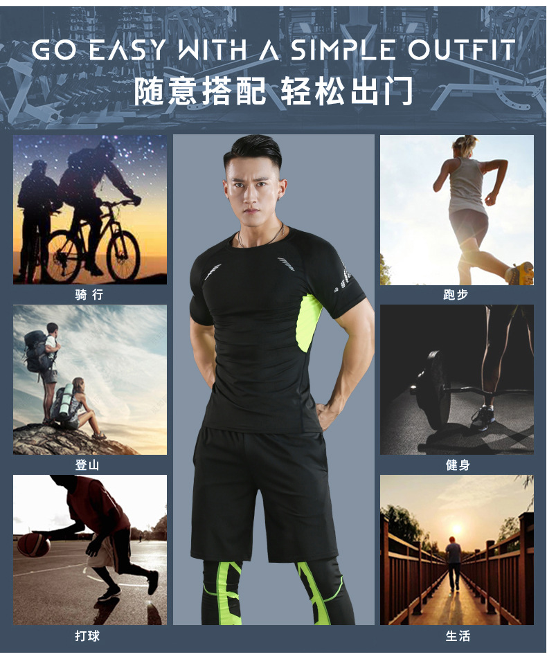 여름 피트니스 의류 스포츠 꽉 옷 남자 농구 달리기 반팔 탄성 훈련 속건 의류 티셔츠 베이스 셔츠스토어 가기