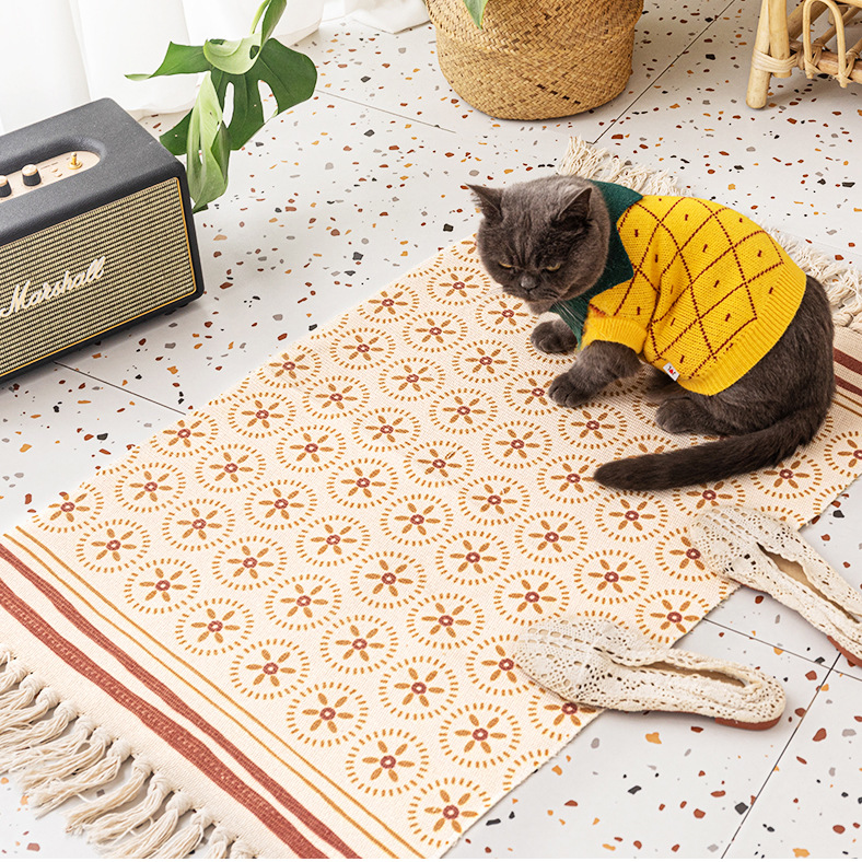 很美观大方的一款编织地垫哦,纯手工编织,源远流长的工艺