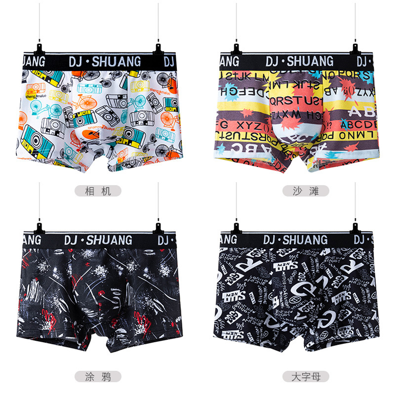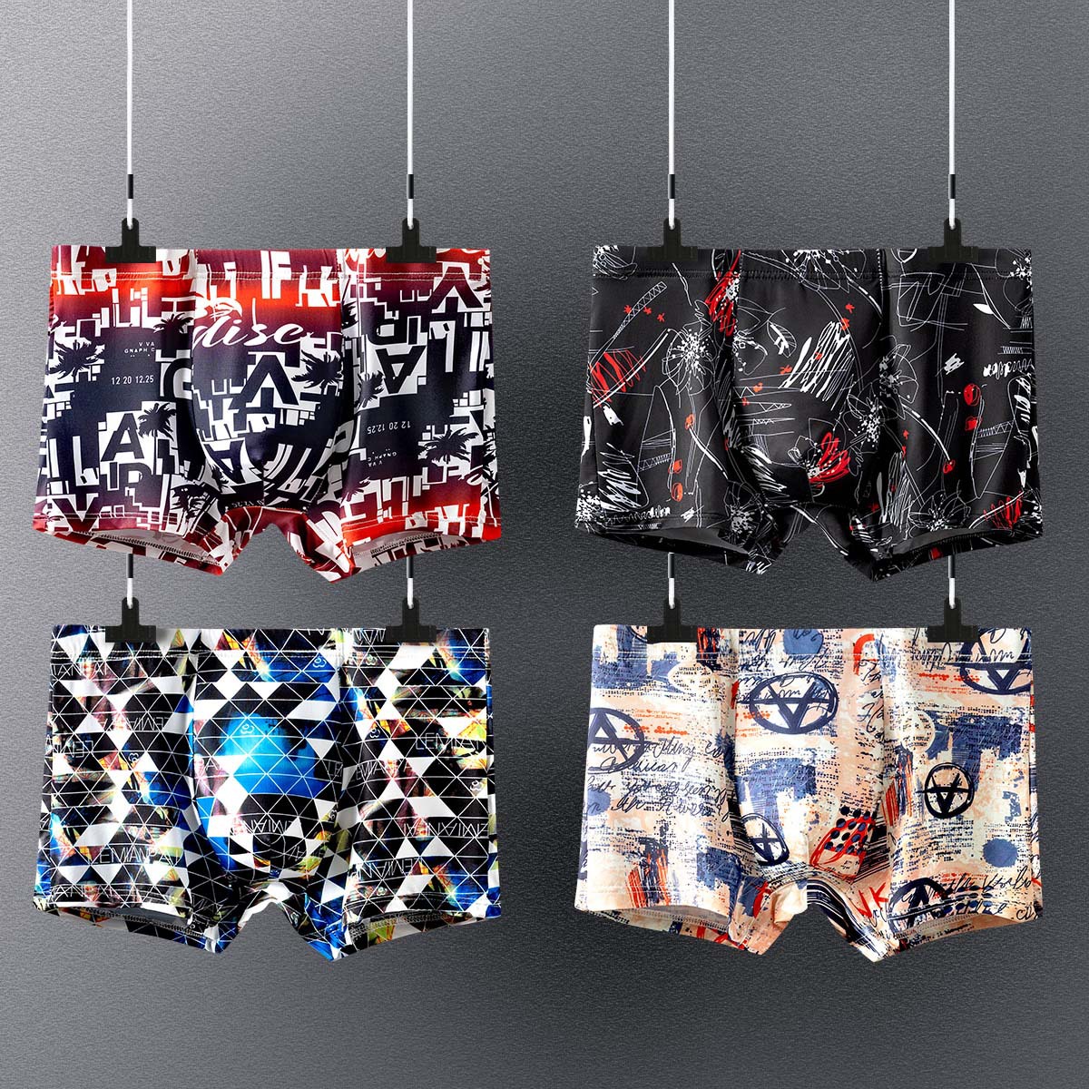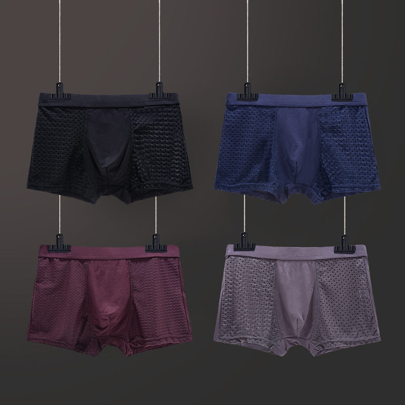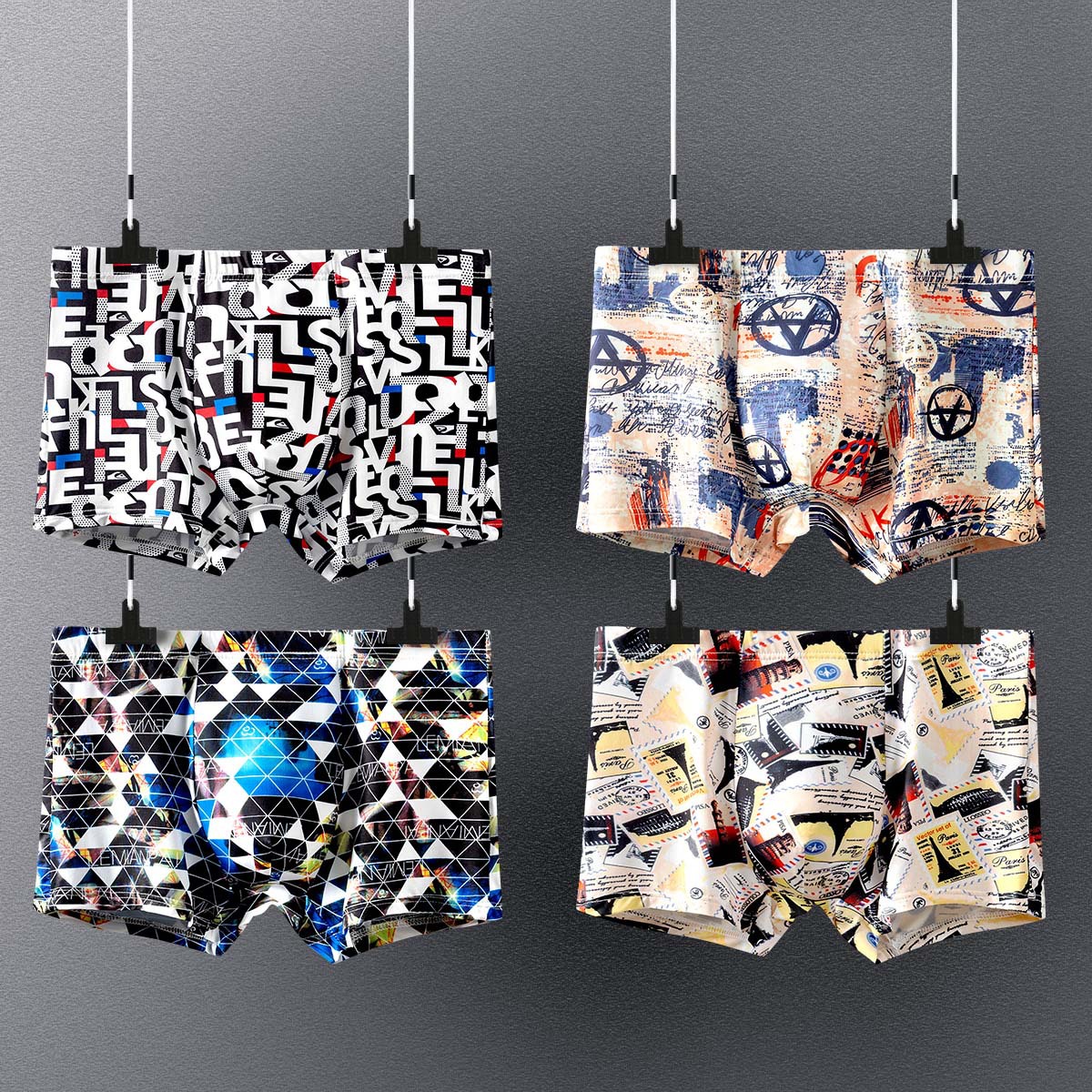 박스형 4 여름 새로운 아이스 실크 남성 속옷 사각 아이스 쿨 통기성 내부 메쉬 아이스 실크 속옷 조수