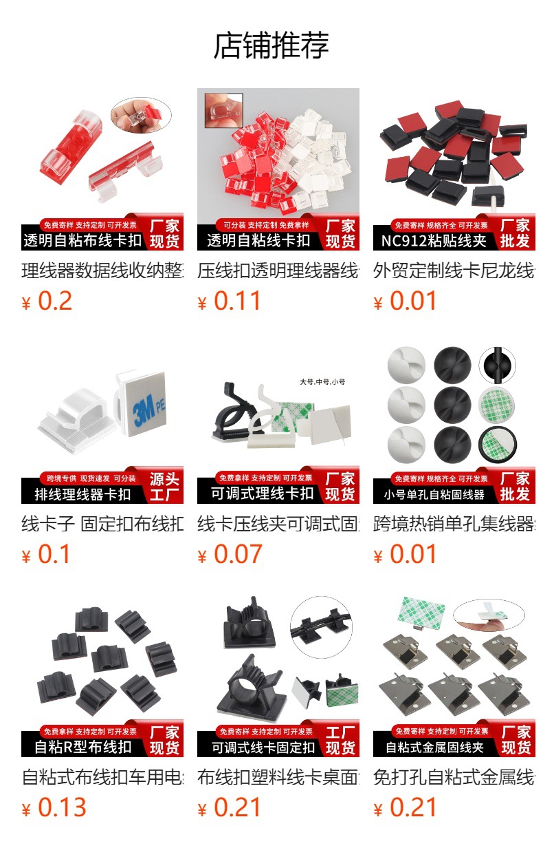 플라스틱 카드형 자체 접착식 케이블 고정 클립, 전선 정리 고정기, 자동차 내비게이션 숨김선 고정 클립스토어 가기