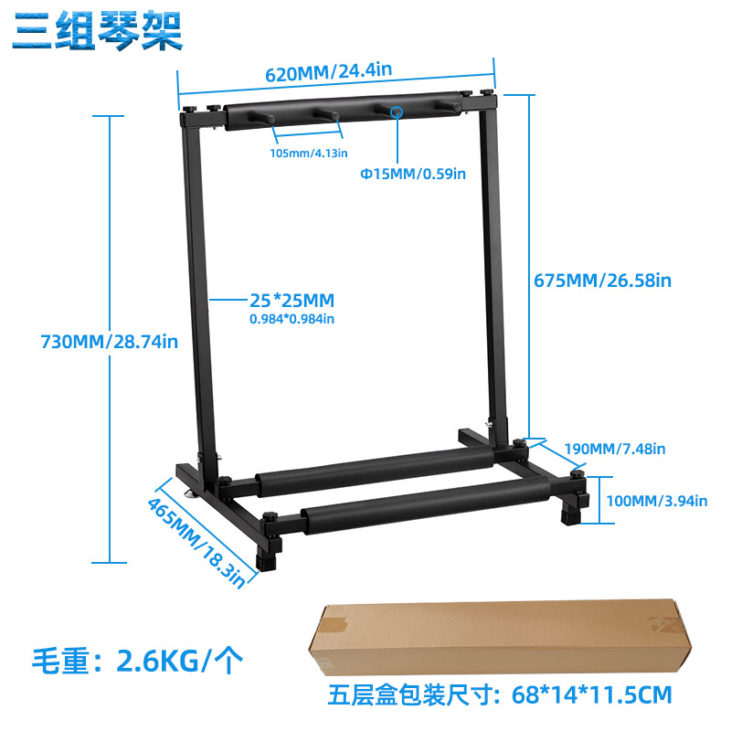 三排架单个毛重:2.6KG,五层内盒尺寸:87.5*14*11.5CM