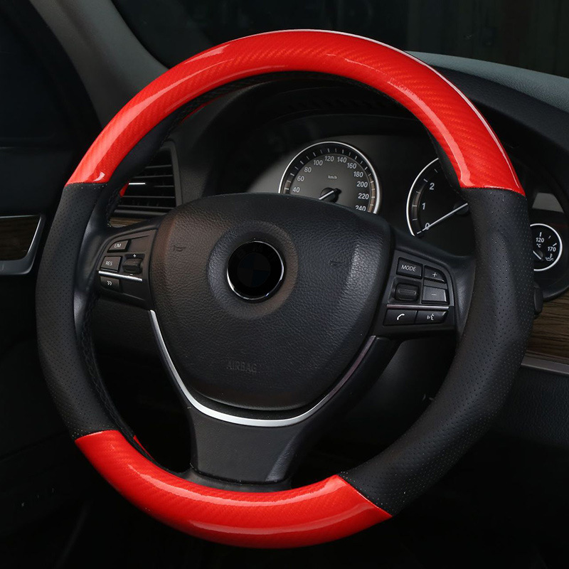 탄소 섬유 핸들 커버 사계절 GM 핸들 커버 미끄럼 방지 통기성 패션 편안한 자동차 핸들 커버스토어 가기