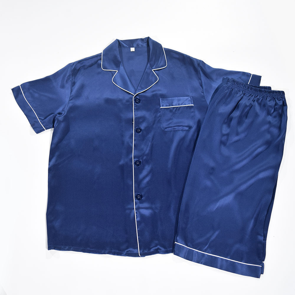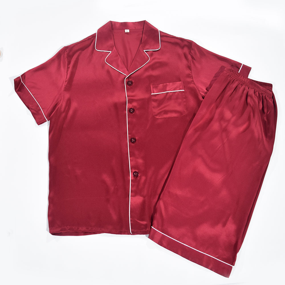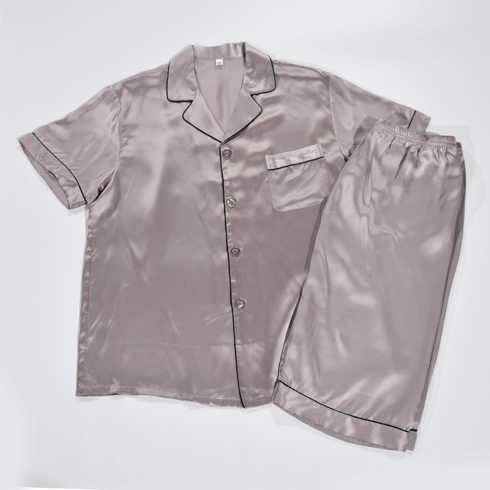 여름 남성용 실크 잠옷 반팔 중간 길이 바지 투피스 얇은 쿨 핏 누에 실크 홈 의류